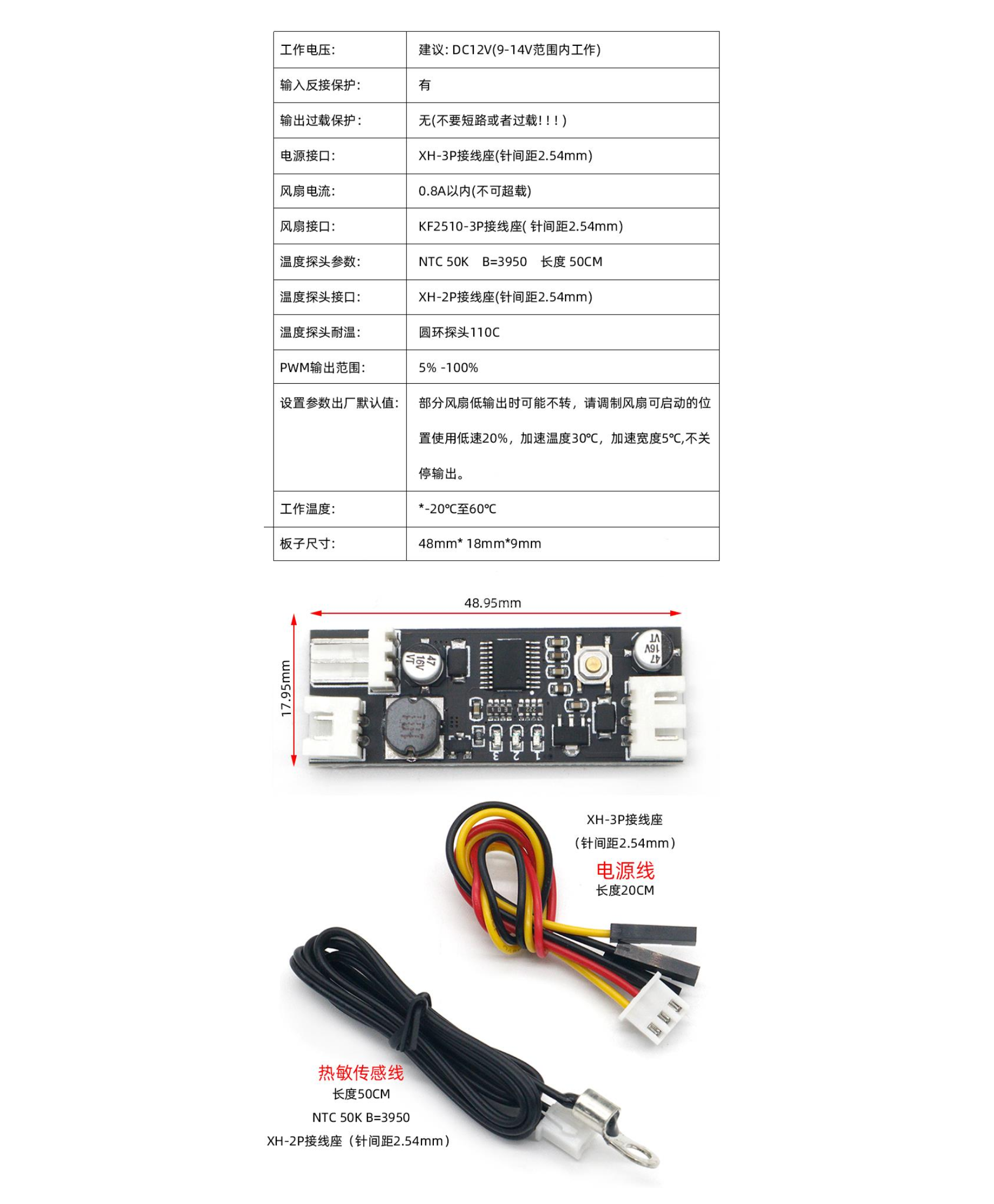 单路12V直流PWM 2-3线风扇温控调速器机箱机电脑风扇温控降噪模块