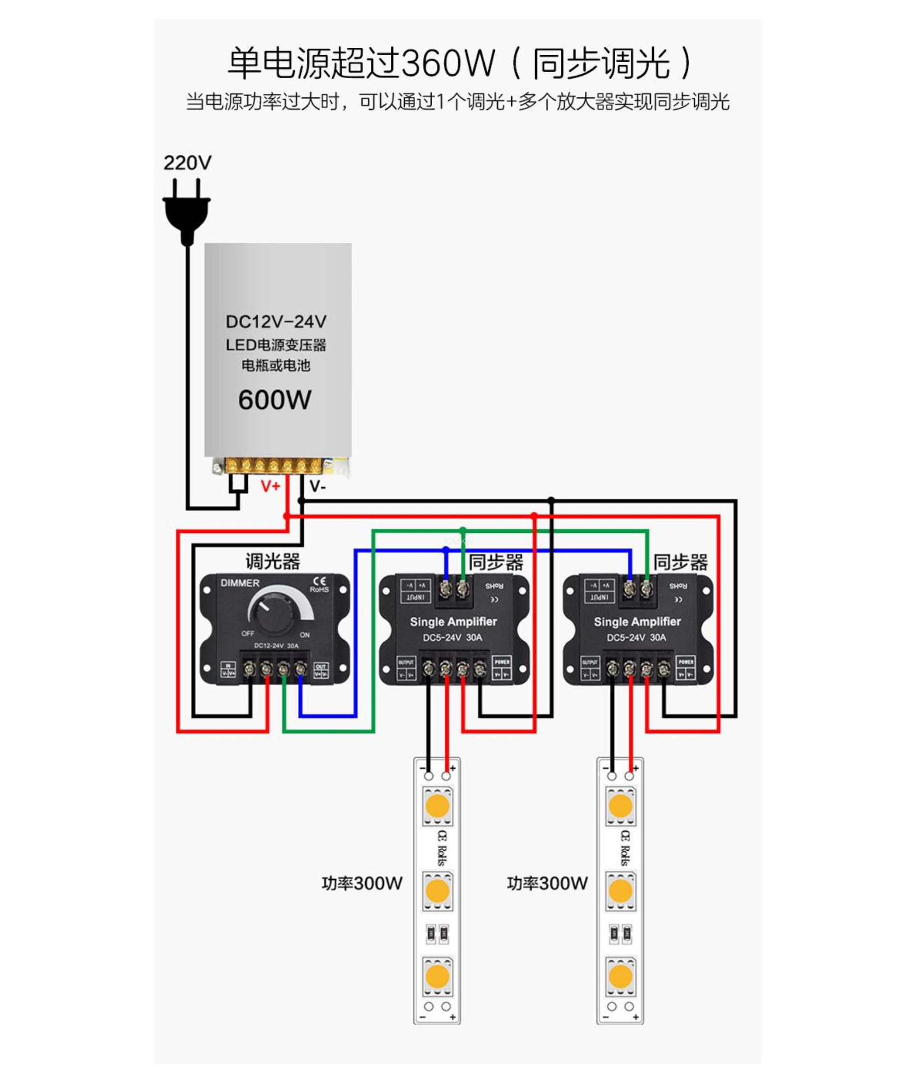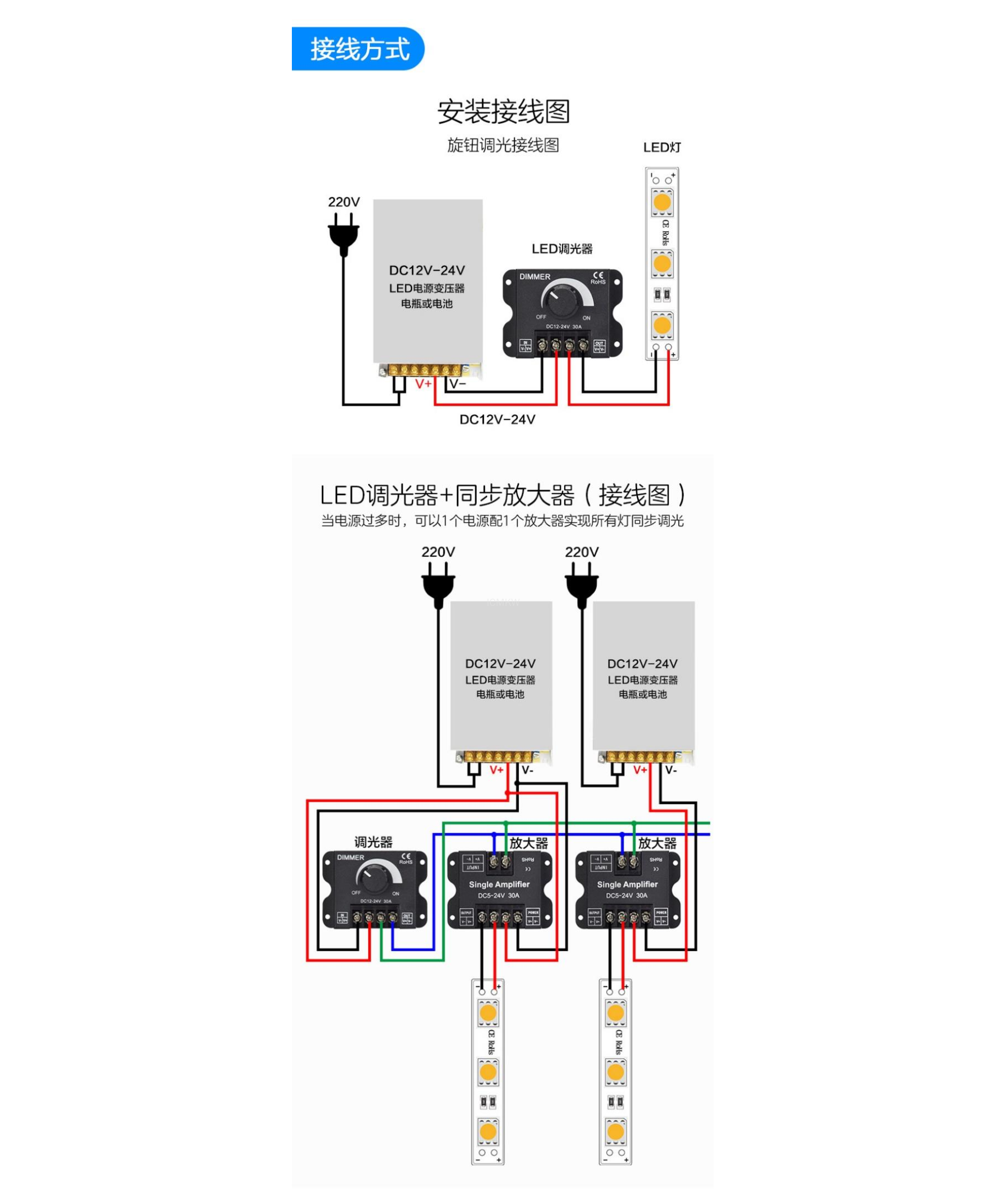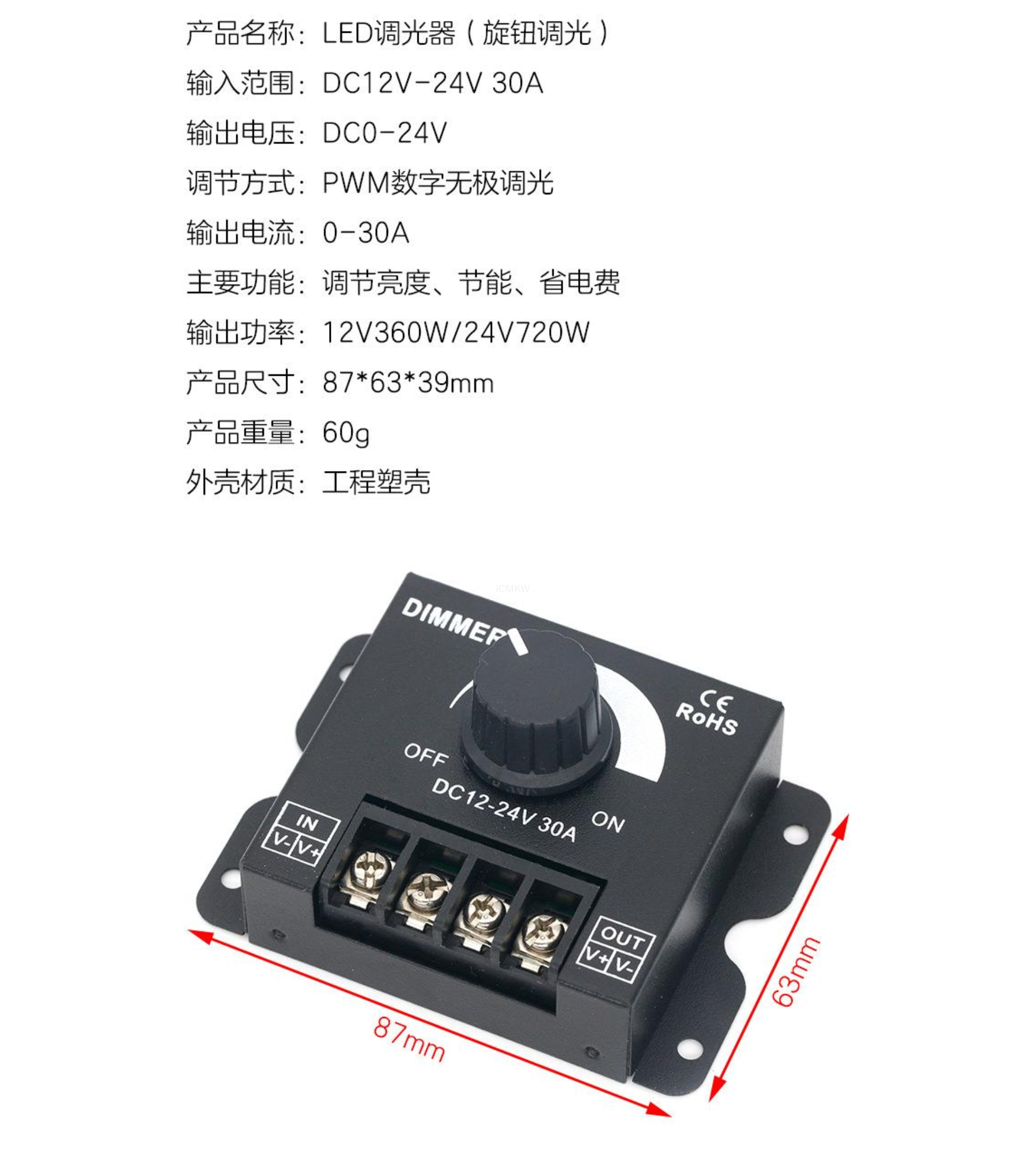 led软硬灯条灯带调光器亮度调节器 DIMMER 旋钮开关12V/24V 30A