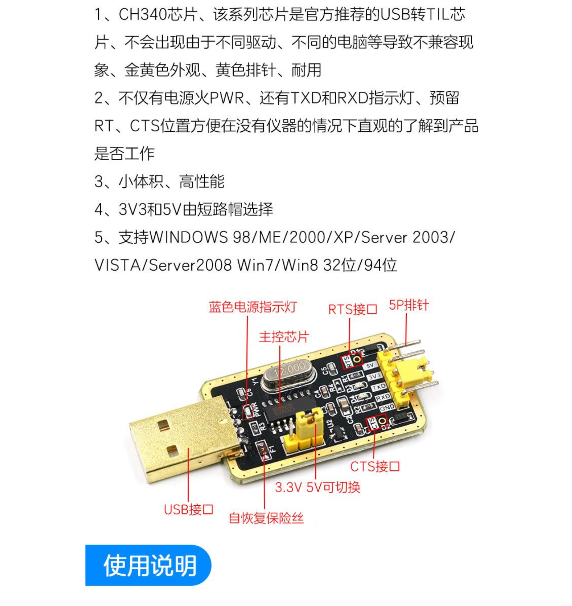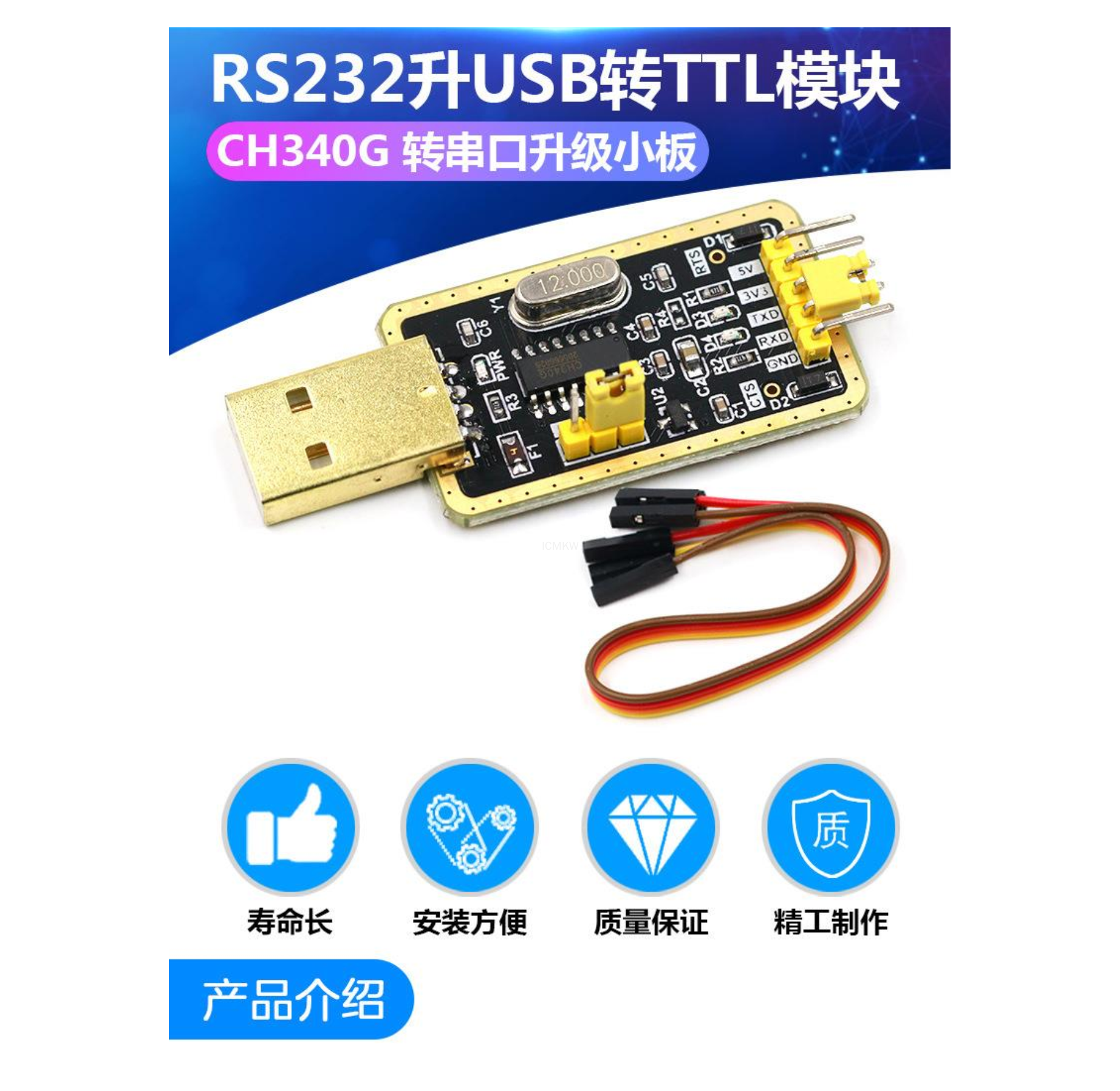 土豪金CH340G RS232升USB转TTL模块转串口中九升级小板ttl刷机线