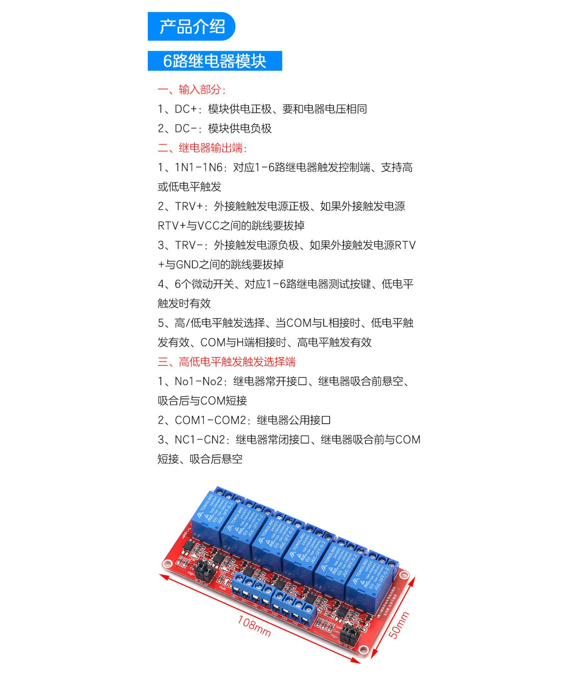 1 2 4 8路 继电器模块 带光耦隔离高低电平5V12V24V 继电器