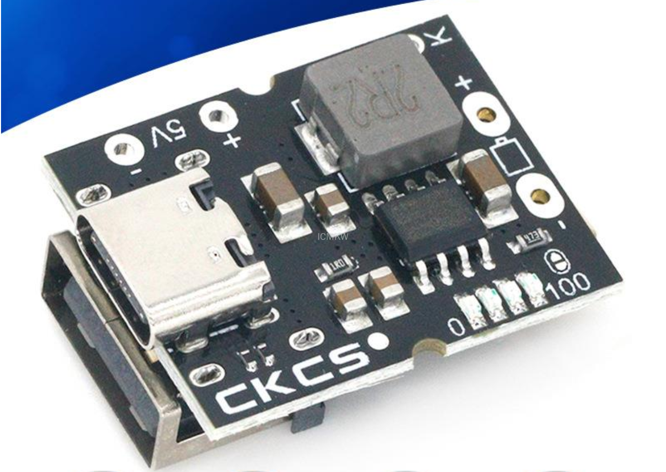 高精度5V2A充放电一体模块 Type-C输入 兼容4.2V/4.35V锂电池