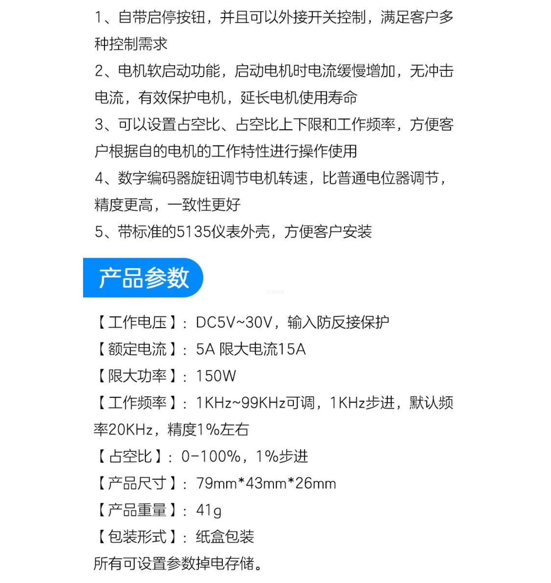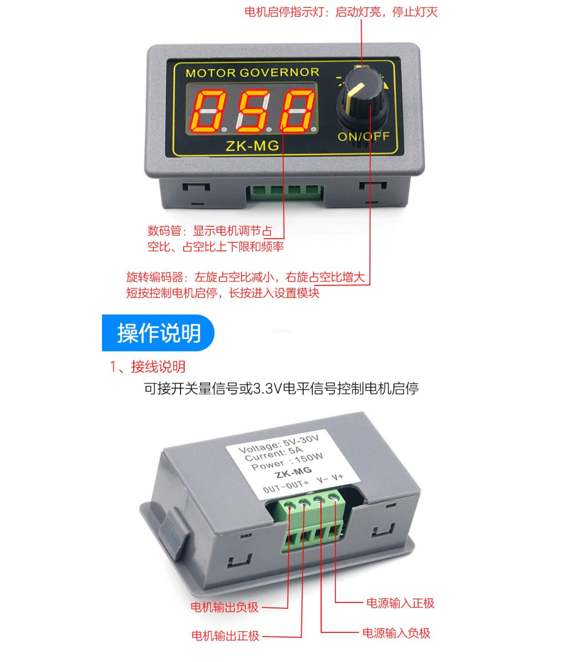 5V12V24大功率PWM直流电机调速器数显编码器占空比频率外壳开关MG