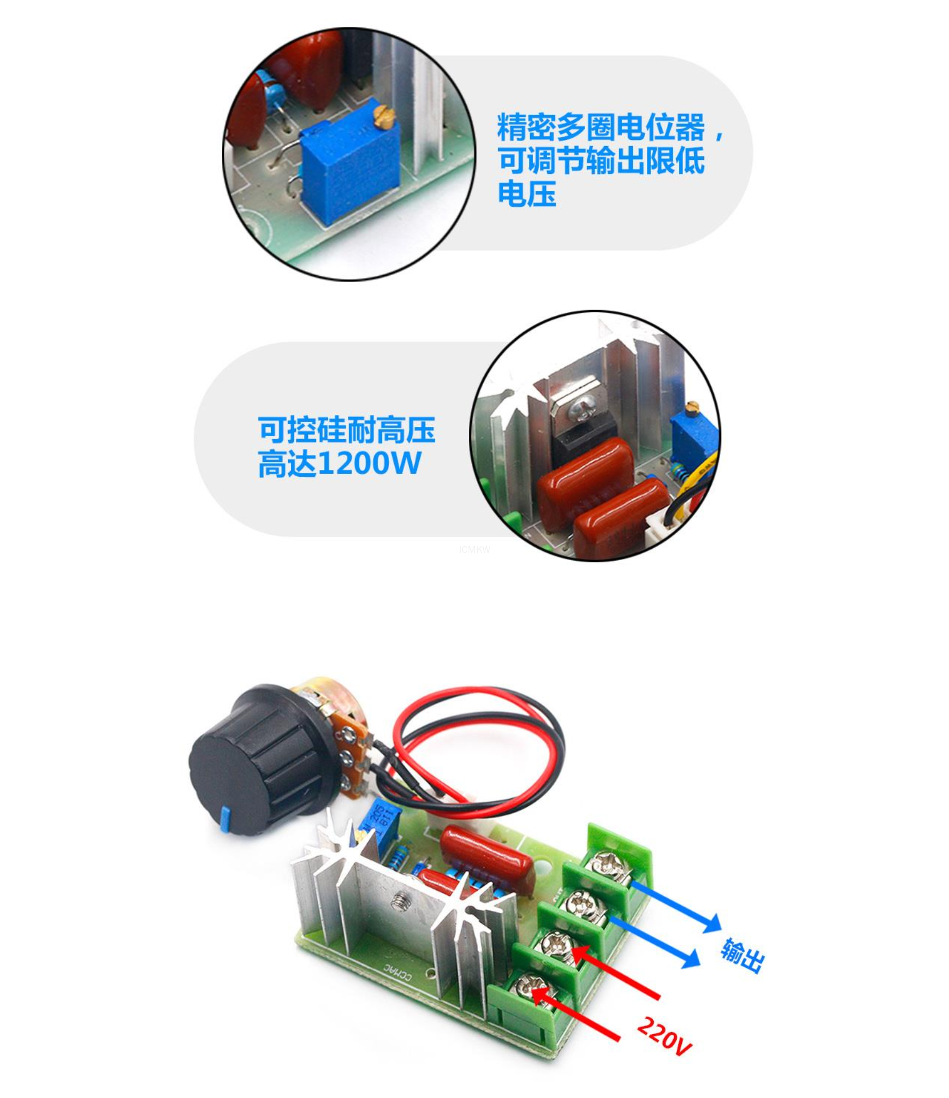 外置旋钮2000W可控硅调压器大功率电子调速器调光调速调温