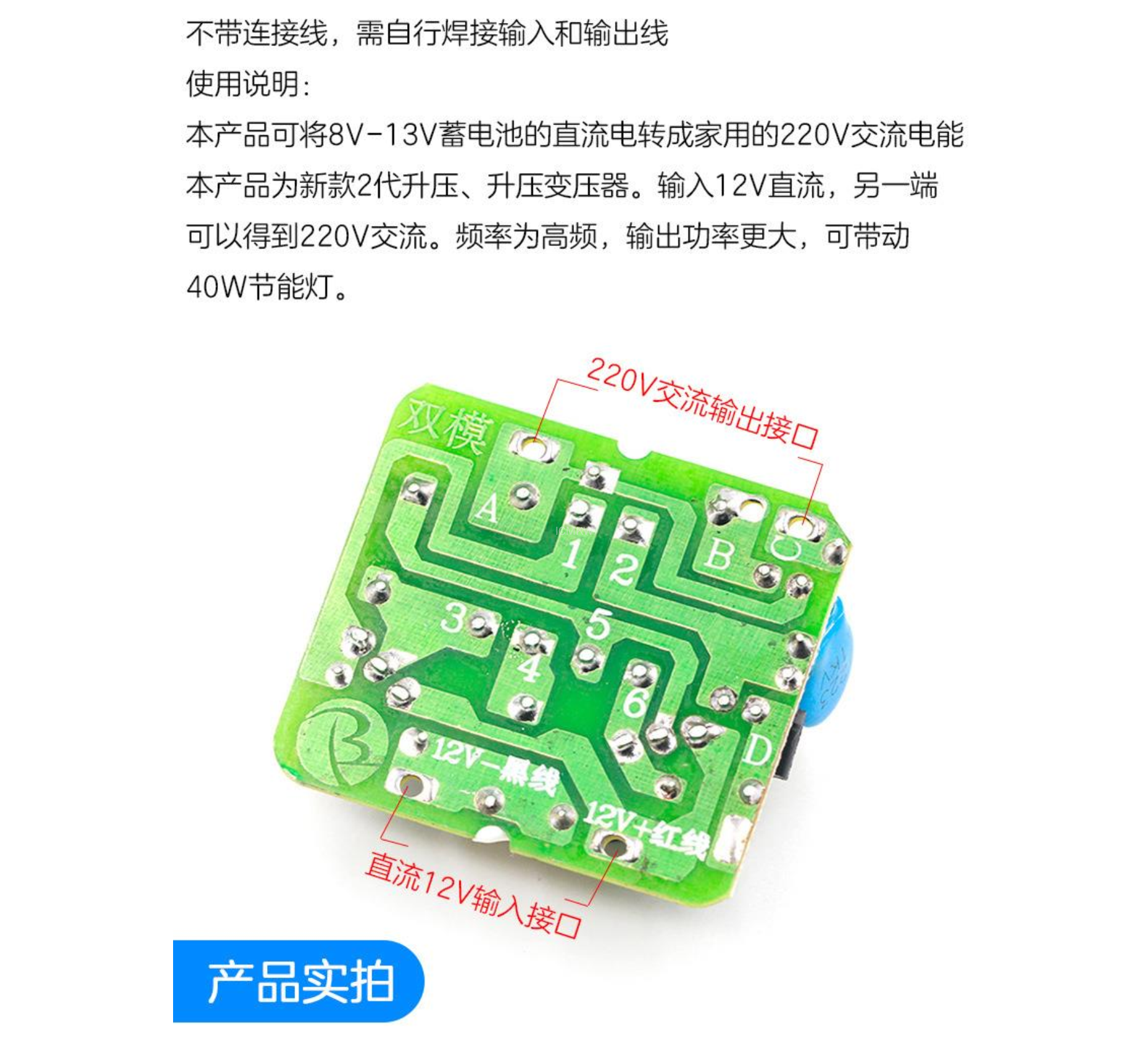 双模40W DC-AC逆变电源12V升220V 升压变压器升压模块逆变器模块