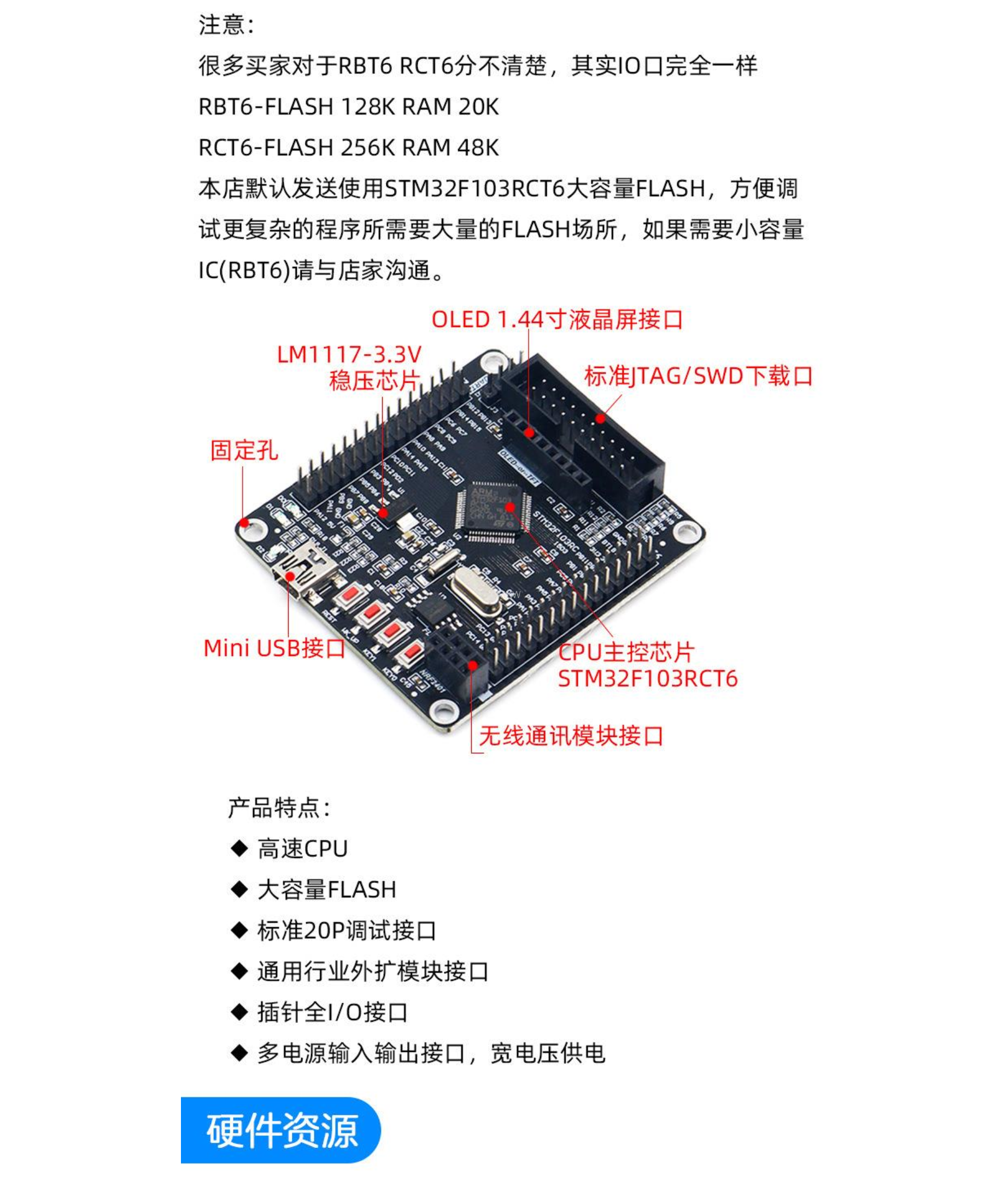STM32F103RCT6/RBT6开发板 ARM STM32开发板 小系统板 51 AVR