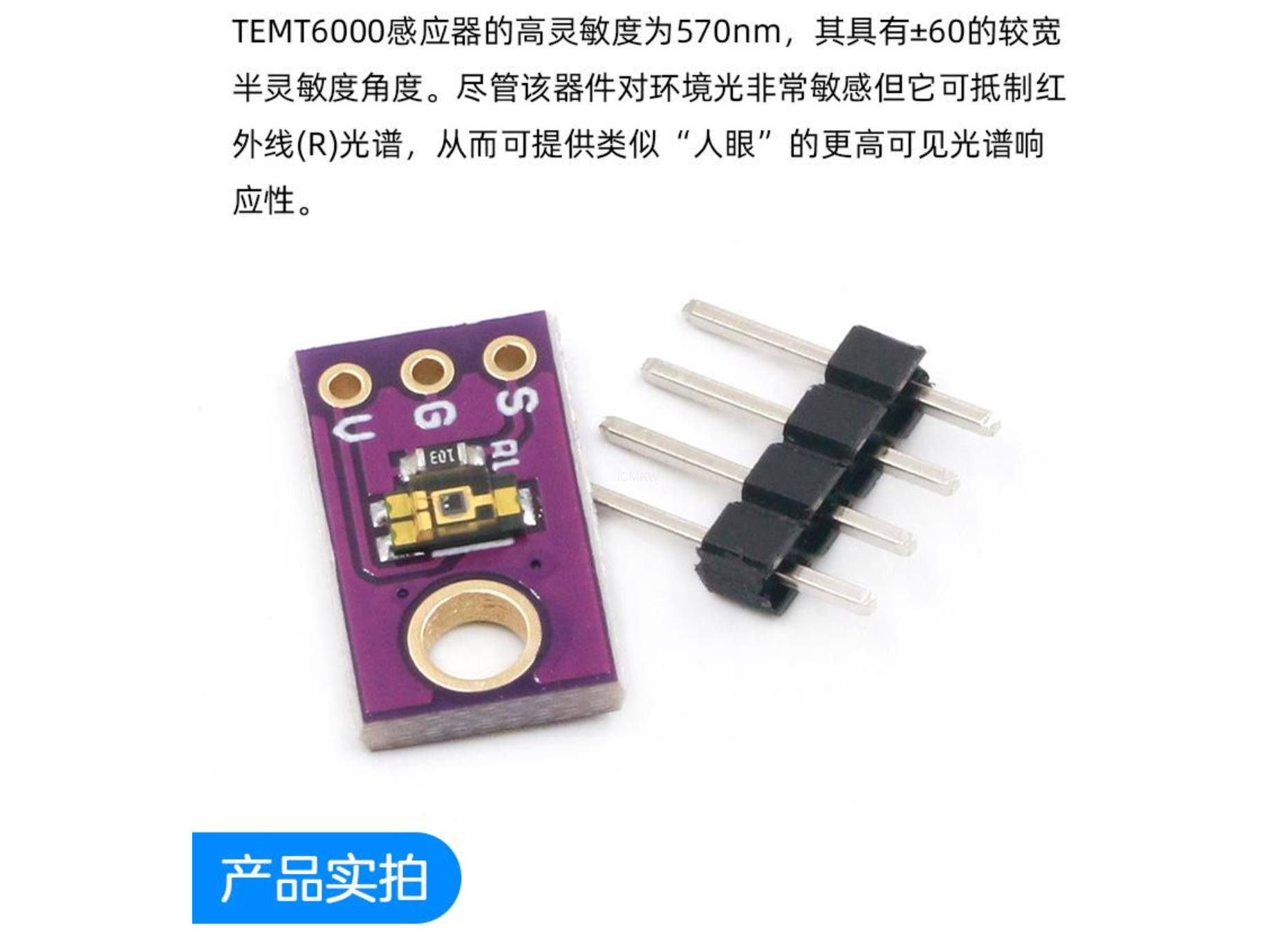 TEMT6000 环境光传感器 模拟光照强度模块 可见光传感器检测