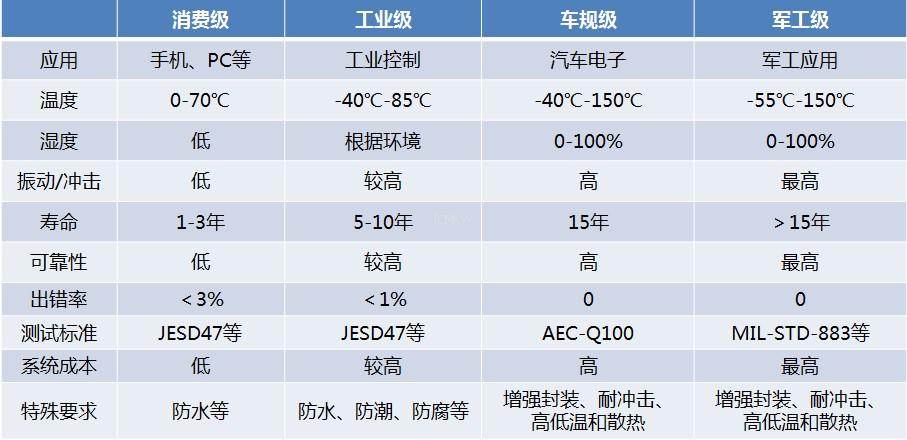 2-3年,对环境、振动、冲击、可靠性和一致性要求比较高,因此相应成本也比消费级和工业级高。
