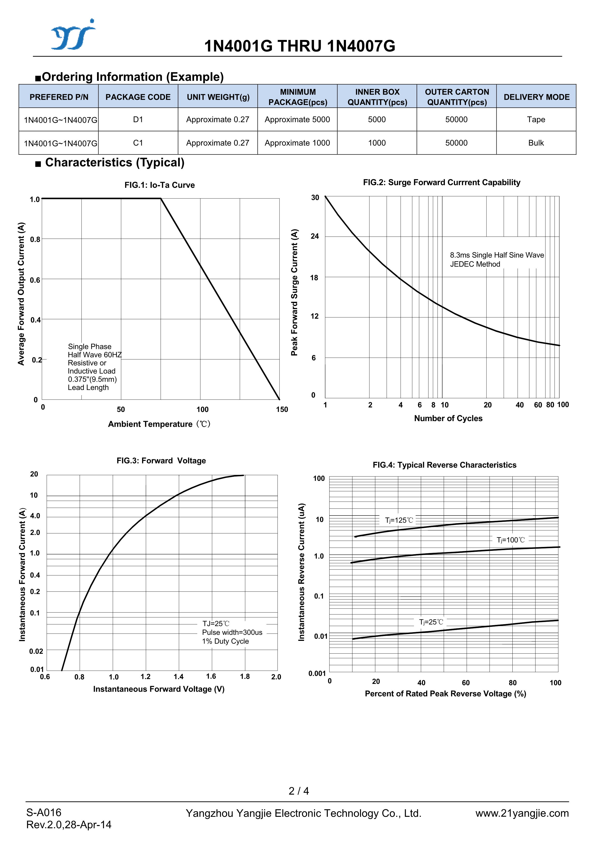 1N4007數據手冊DO-41封裝YANGJIE(揚傑)PDF規格書,中英文下載