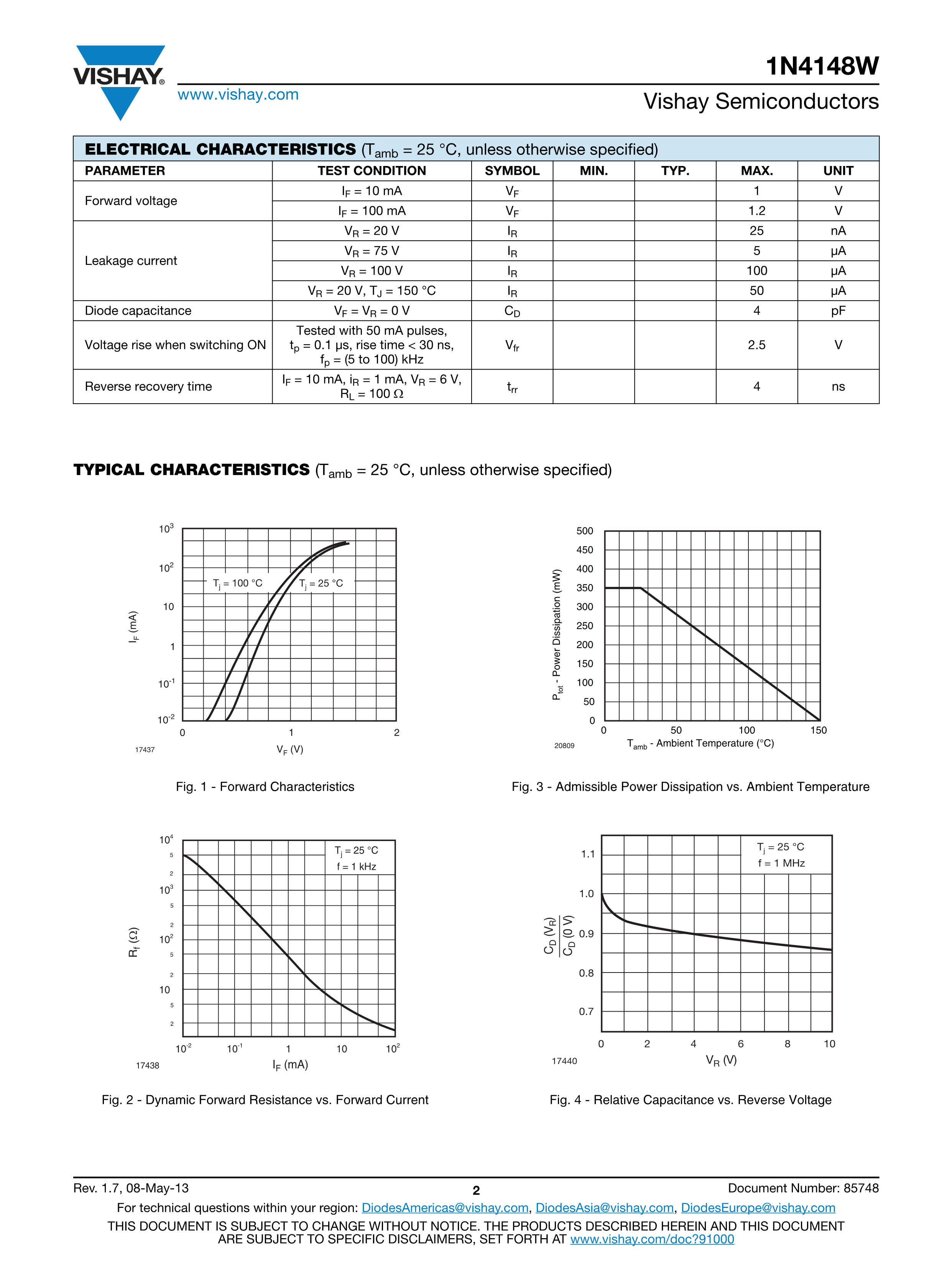 1N4148W-HE3-08數據手冊SOD-123封裝VISHAY(威世)PDF規格書,中英文下載