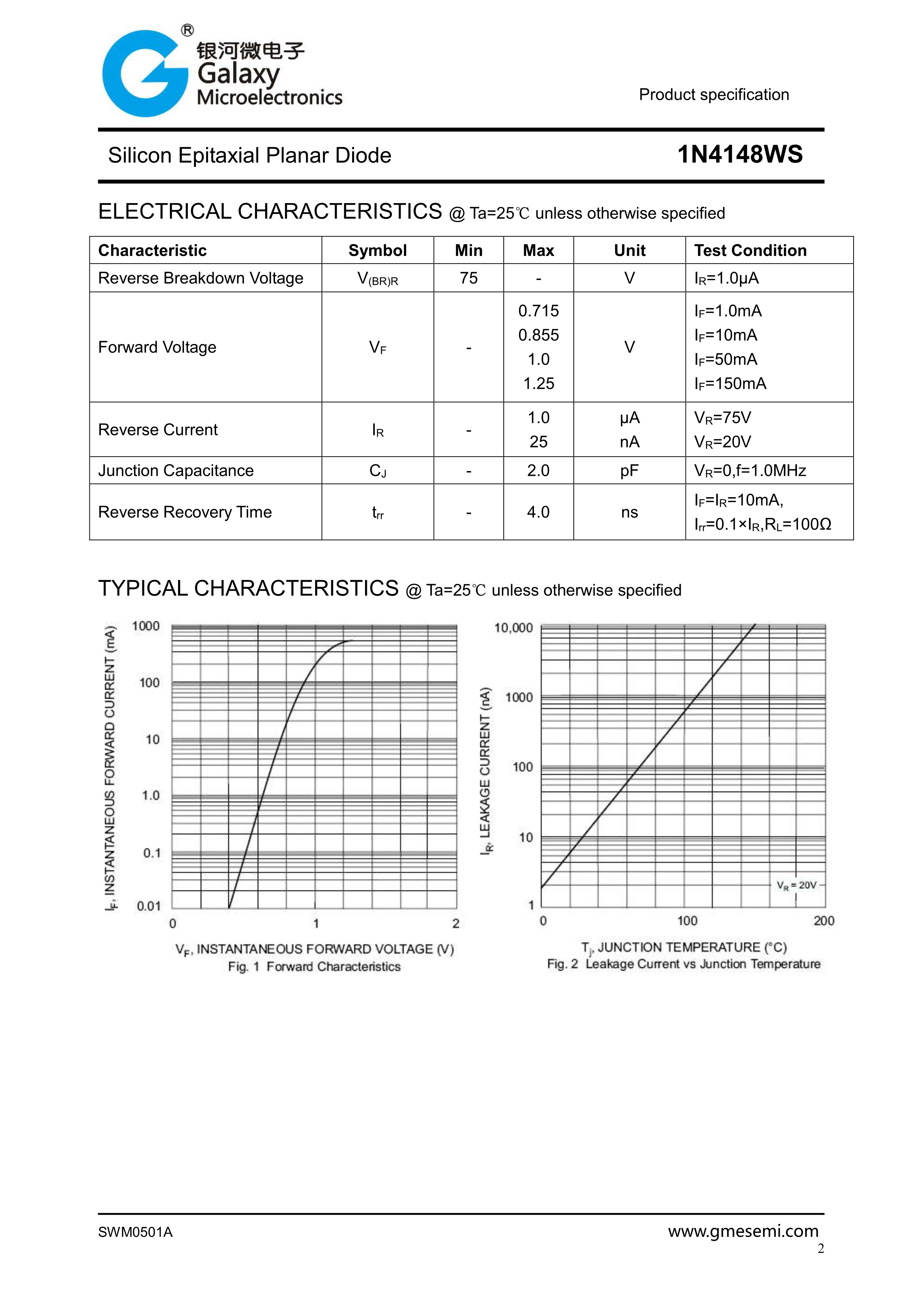 1N4148WSG數據手冊SOD-323封裝銀河微電子PDF規格書,中英文下載