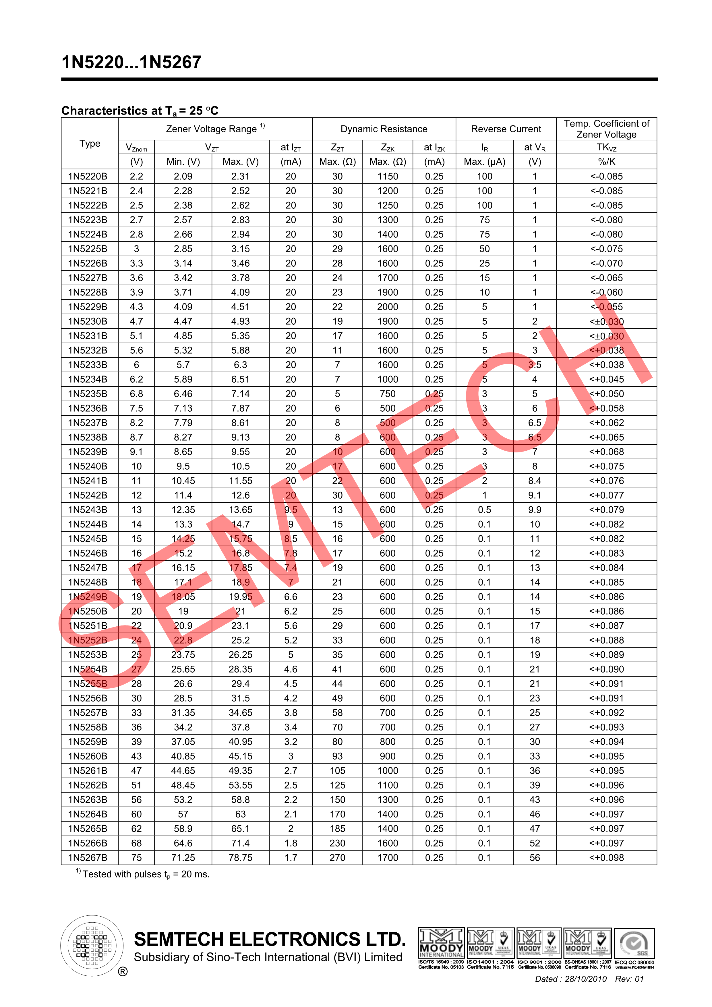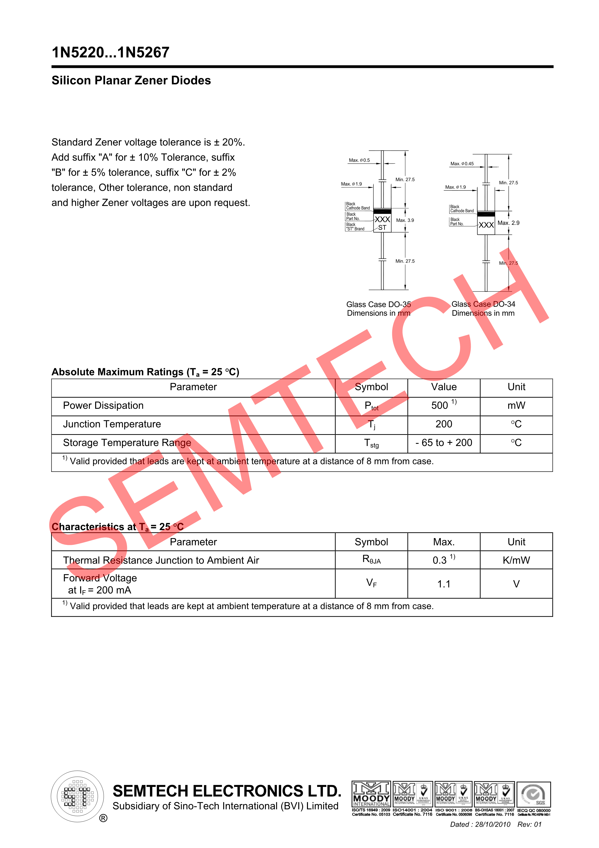 1N5261B數據手冊DO-35封裝ST(先科)PDF規格書,中英文下載
