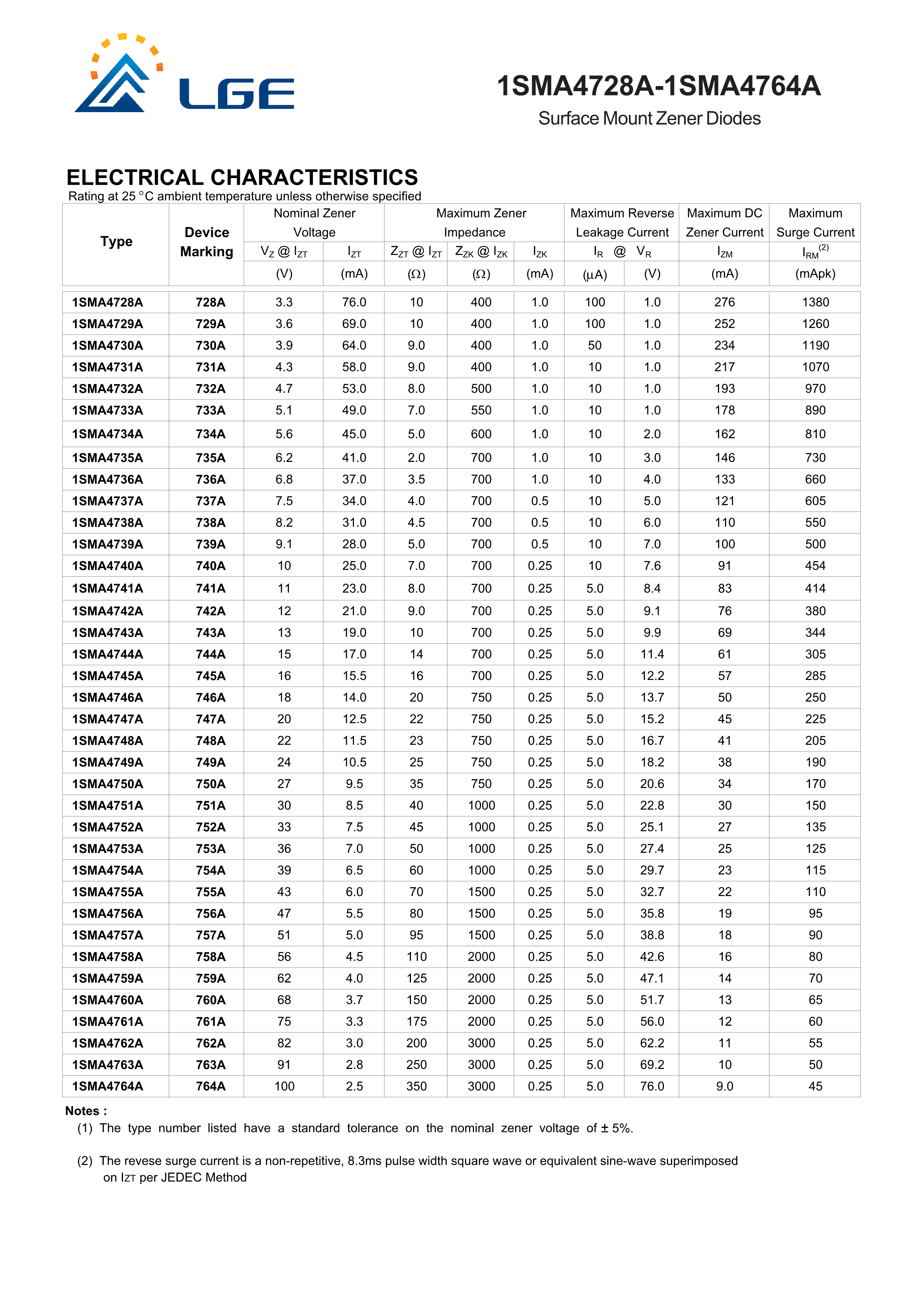 1SMA4742A數據手冊SMA封裝LGE(魯光)PDF規格書,中英文下載