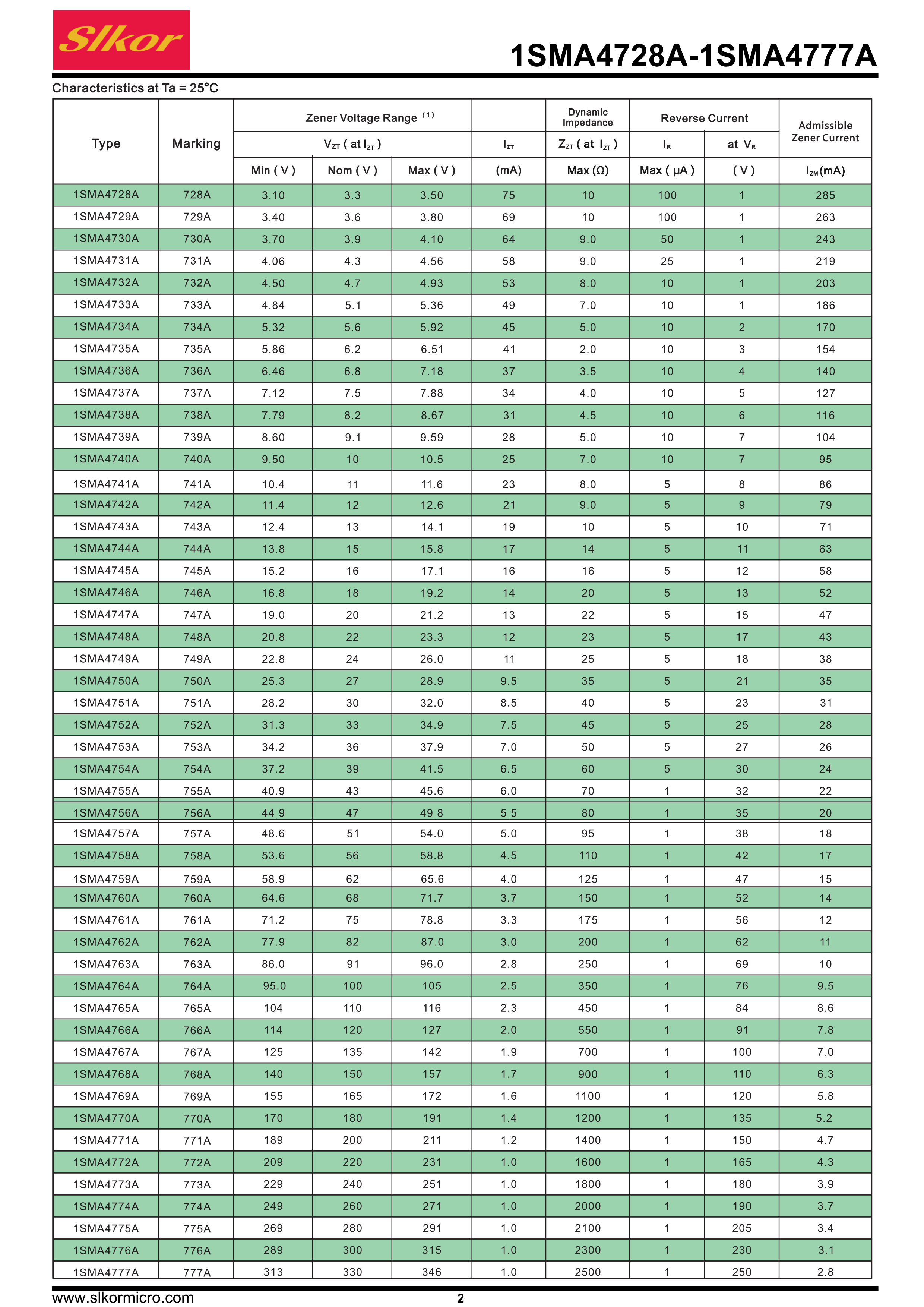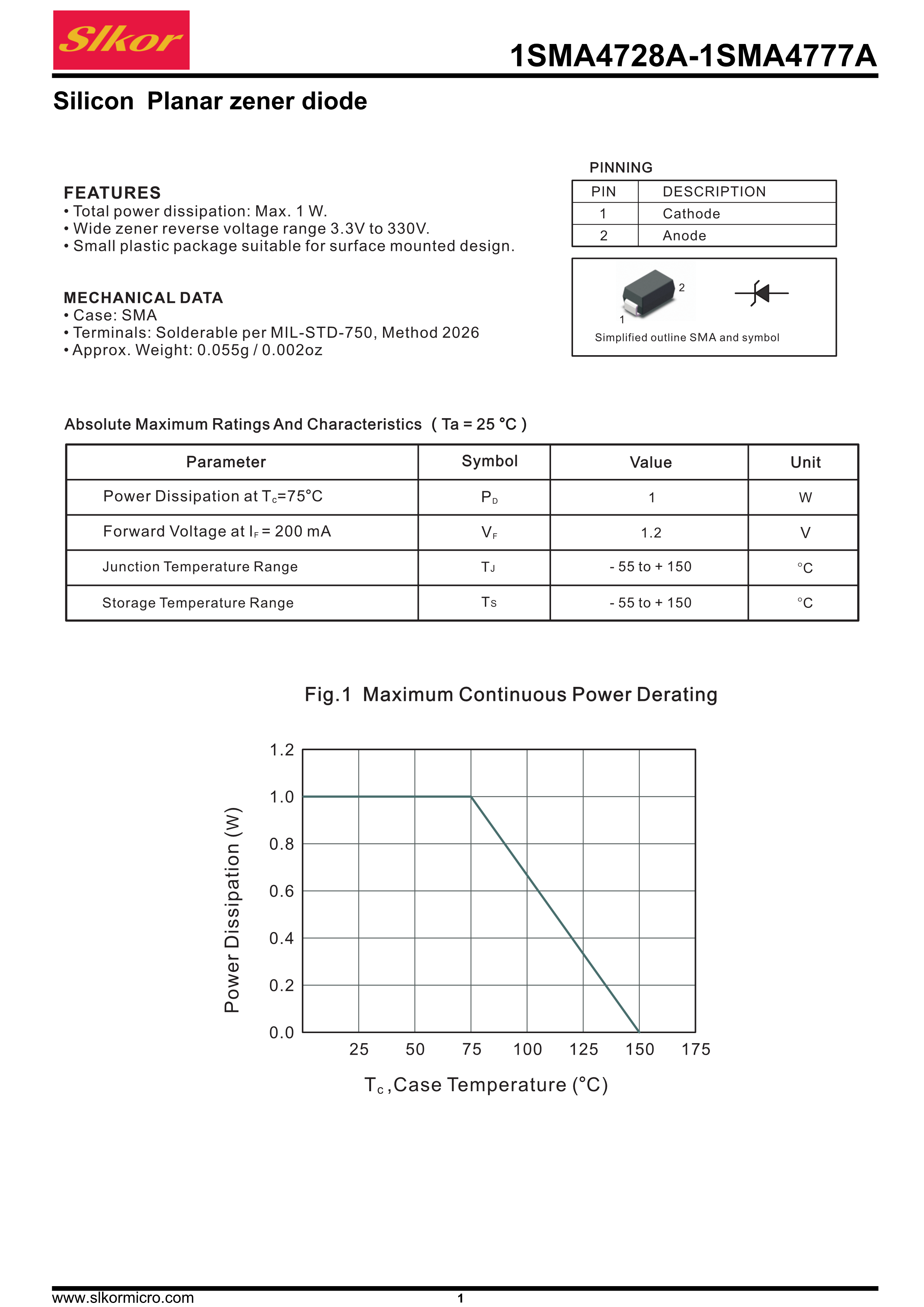 1SMA4744A數據手冊SMA(DO-214AC)封裝Slkor(薩科微)PDF規格書,中英文下載