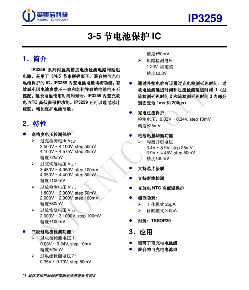 IP3259,3-5 節電池保護芯片規格書下載