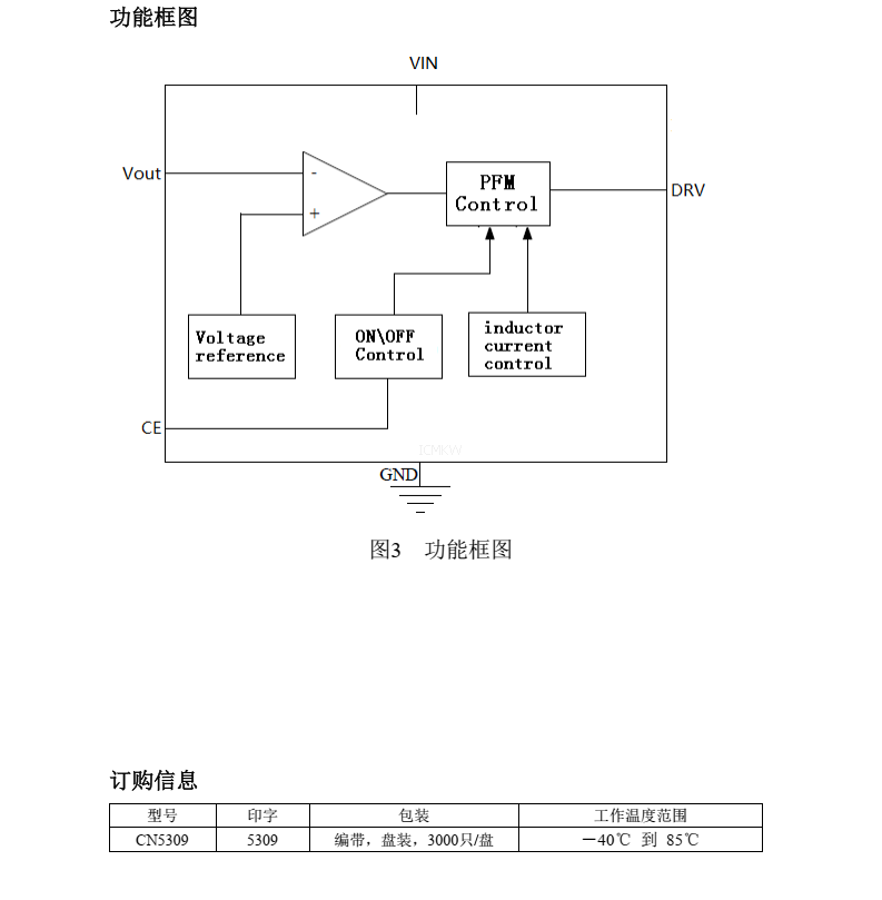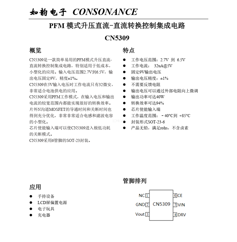 CN5309,PFM 模式陞壓直流-直流轉換控製集成電路芯片規格書下載