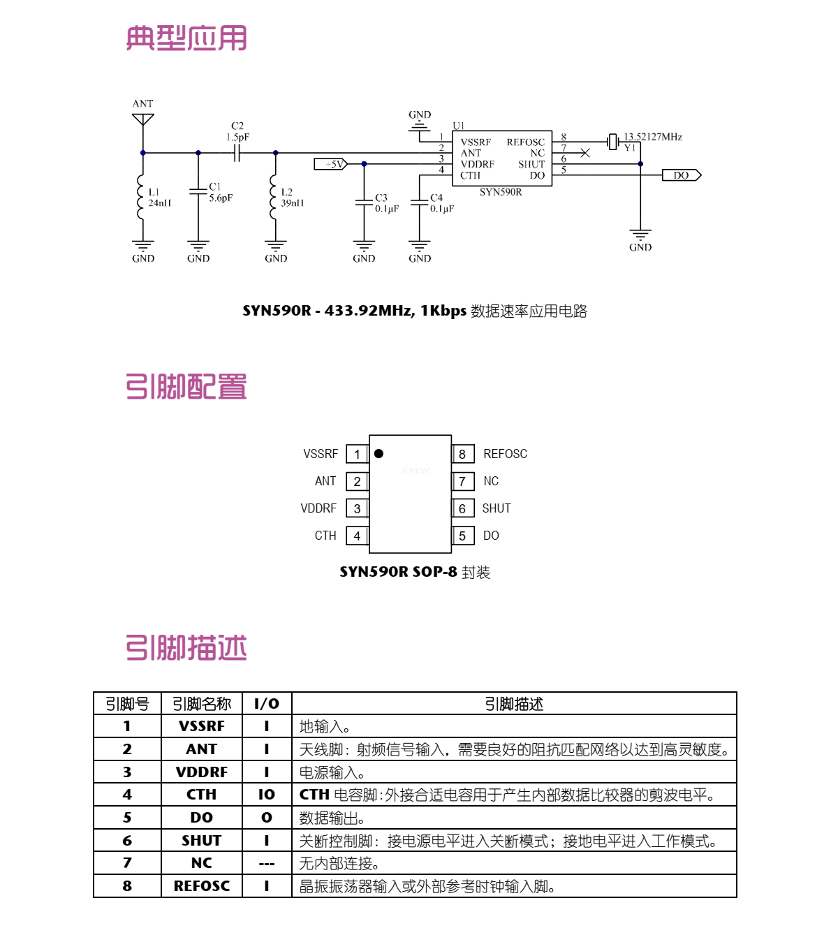 SYN590,300MHZ至450MHZASK接收機芯片PDF規格書下載