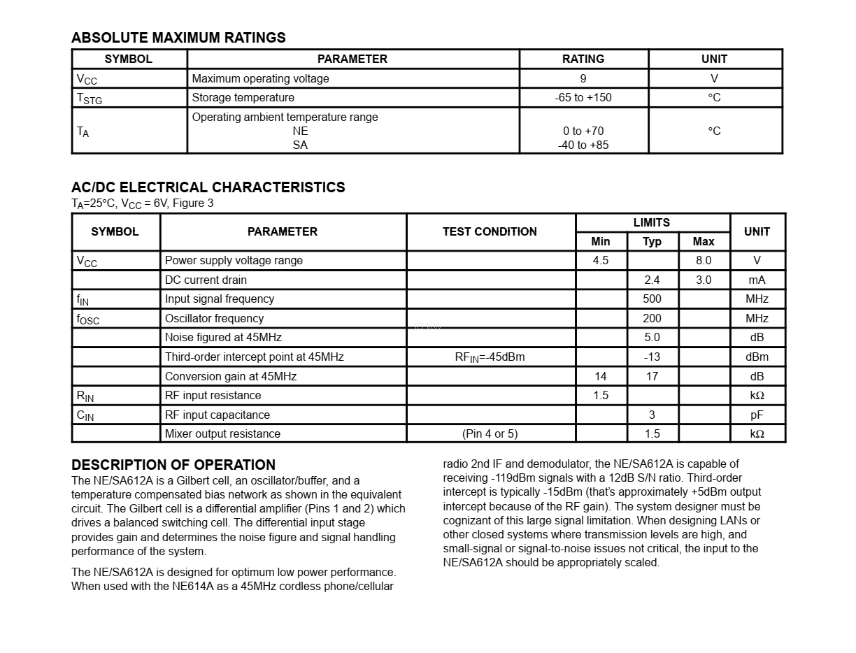 NE612AN,雙平衡混頻器和振蕩器芯片PDF規格書下載