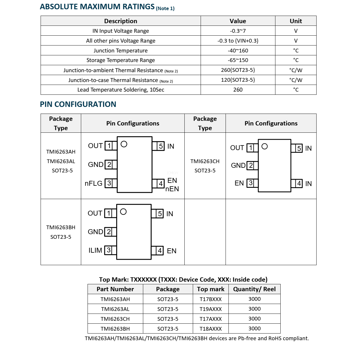 TMI6263AH,精密配電開關芯片PDF規格書下載