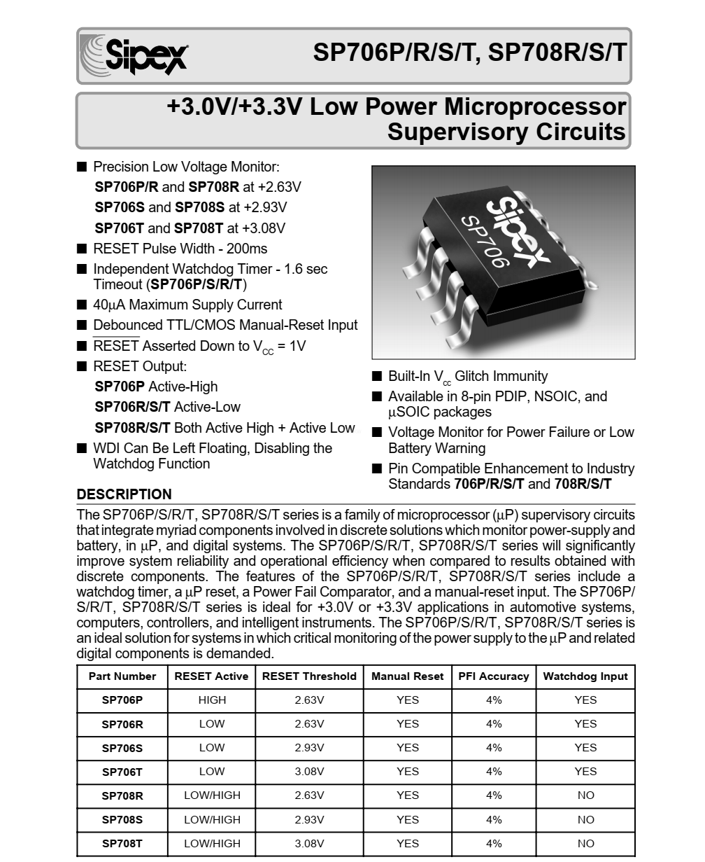 SP706REN-LTR,低功耗微處理器監控電路芯片PDF規格書下載
