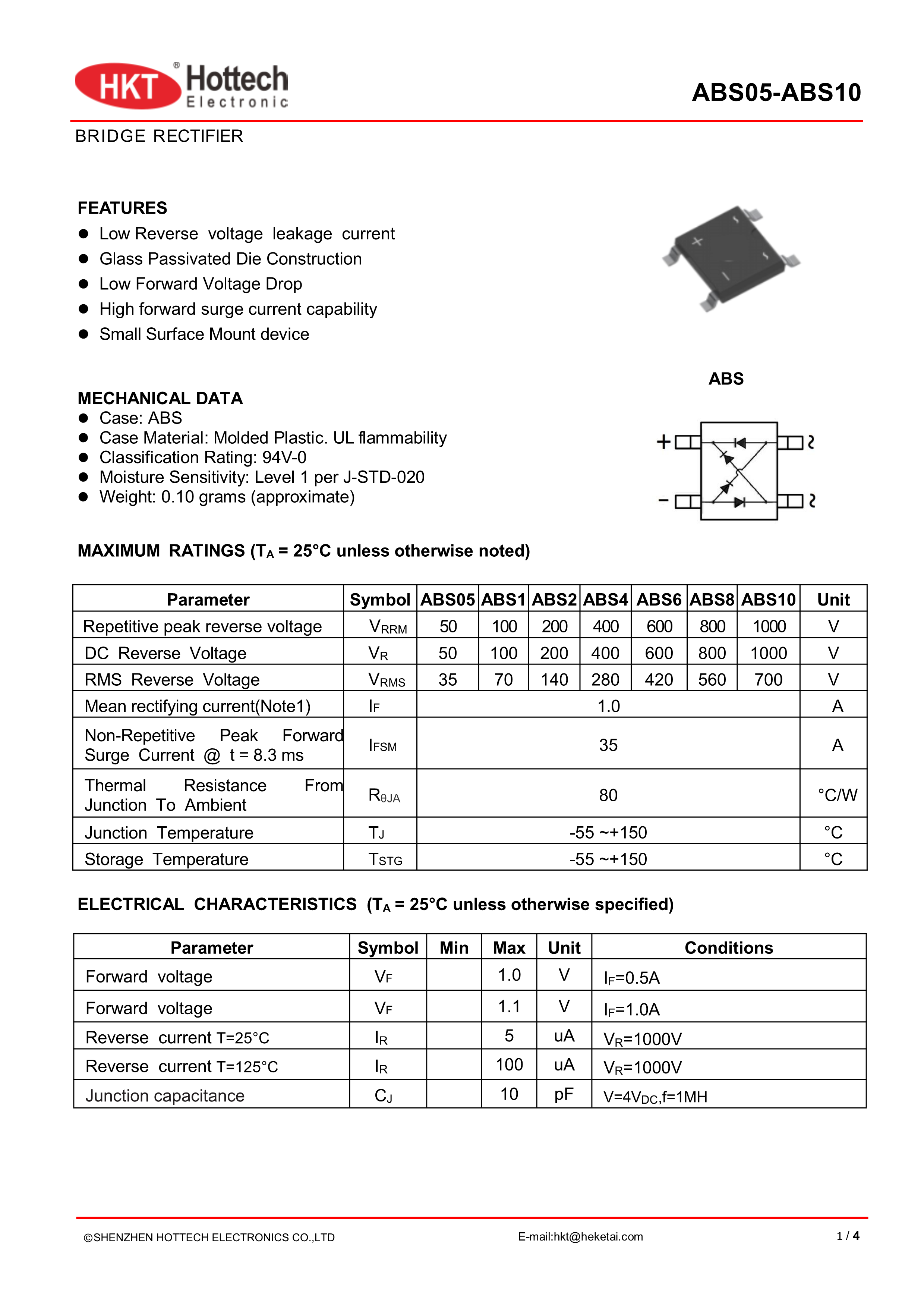 ABS10數據手冊ABS封裝Hottech(閤科泰)PDF規格書,中英文下載
