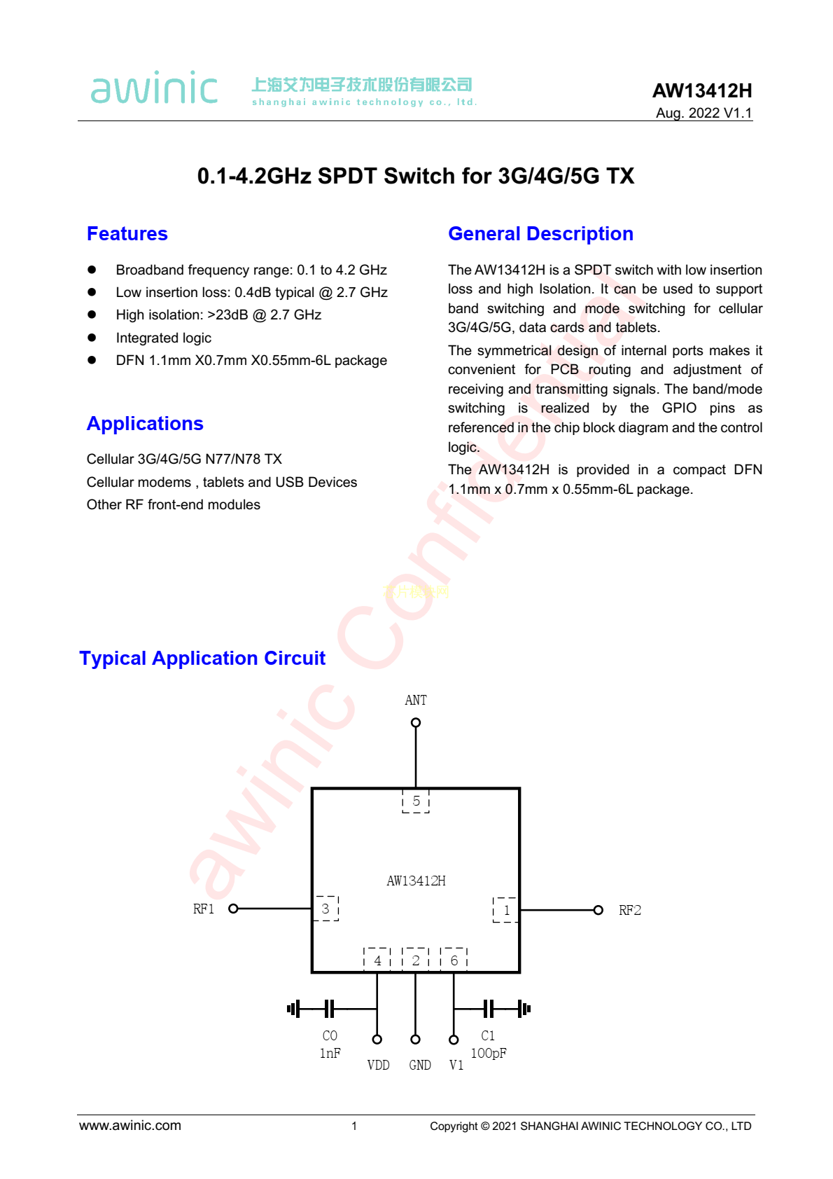 AW13412HDNR PDF規格書,中英文下載