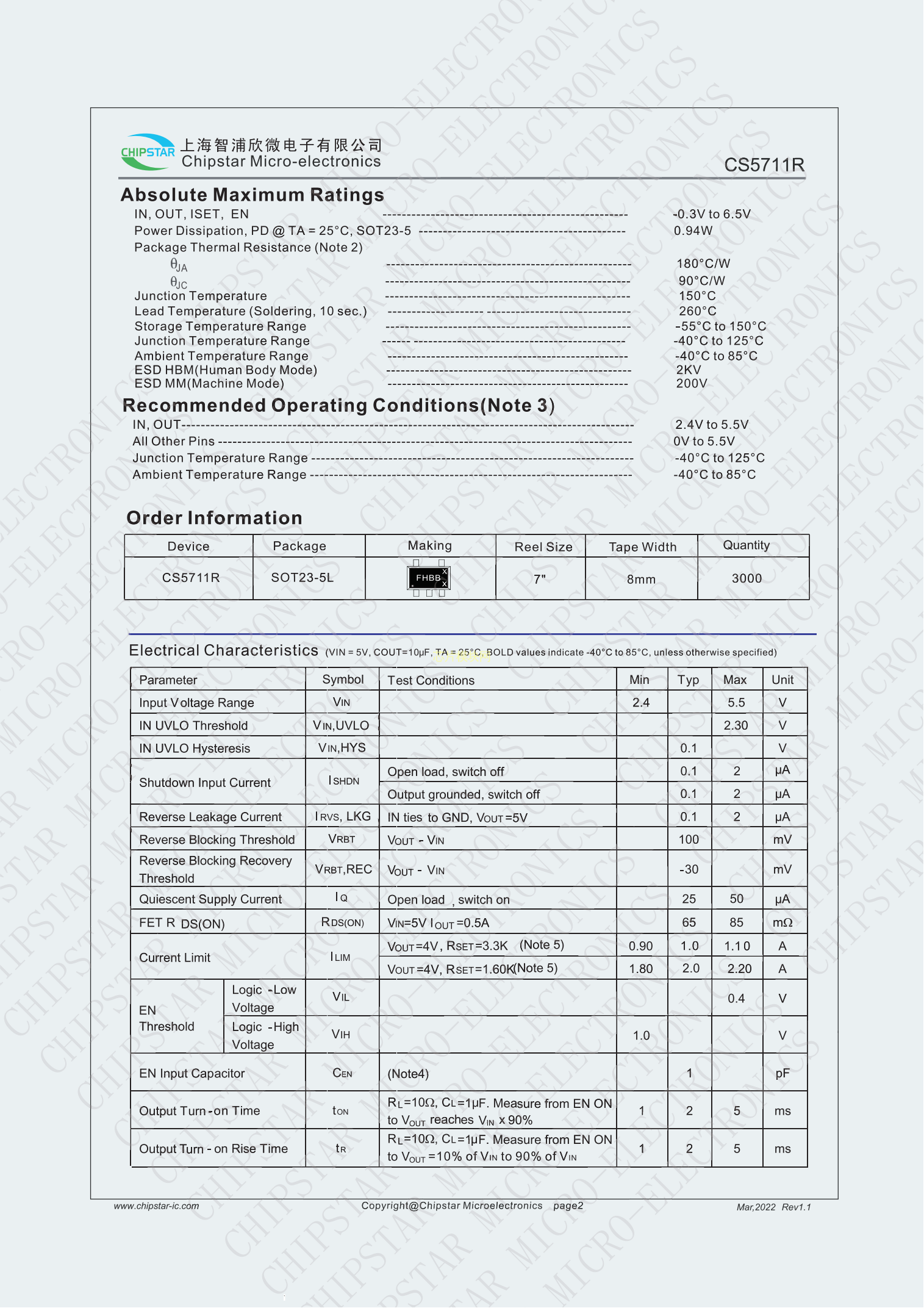 CS5711R PDF規格書,中英文下載