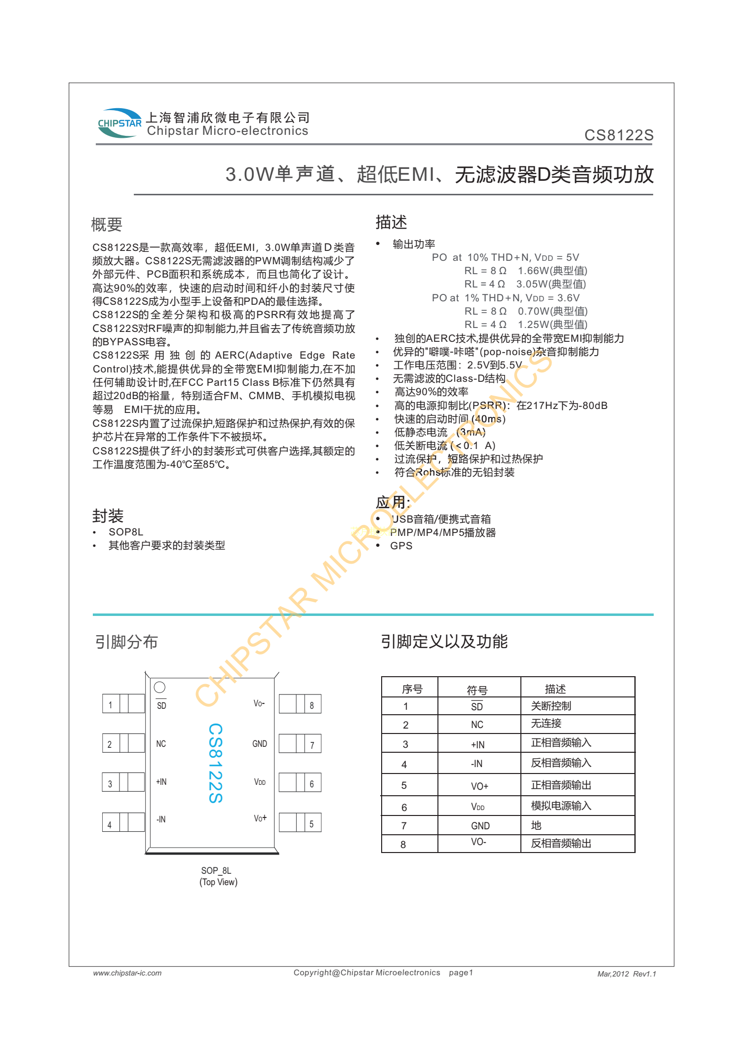 CS8122S PDF規格書,中英文下載