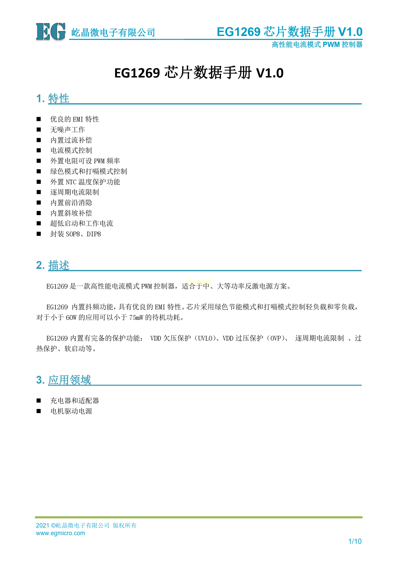 EG1269中小功率電流模式PWM控製器數據手冊V1.01.pdf