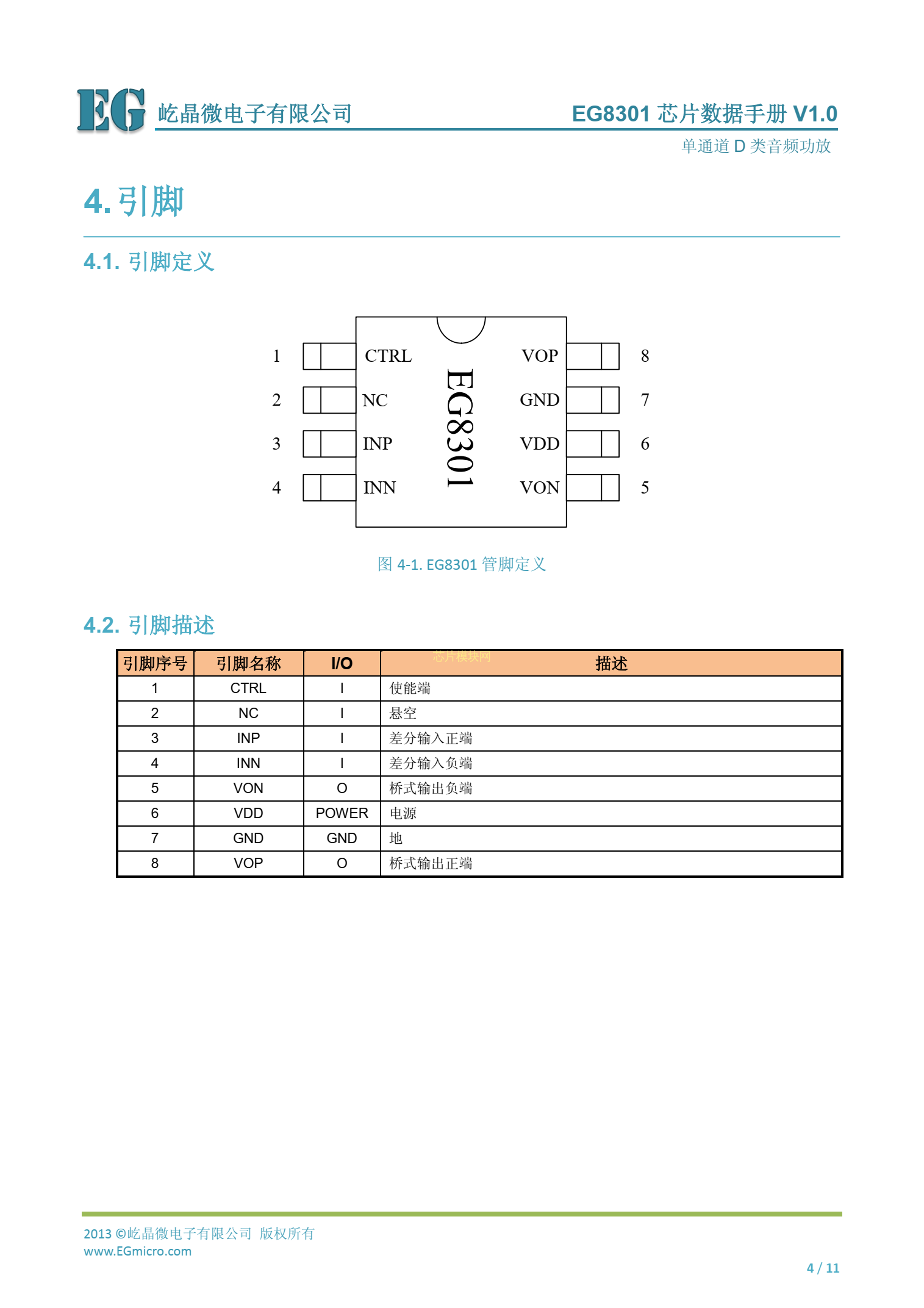EG8301_3W無濾波D類單聲道音頻功放芯片數據手冊V1.0.pdf