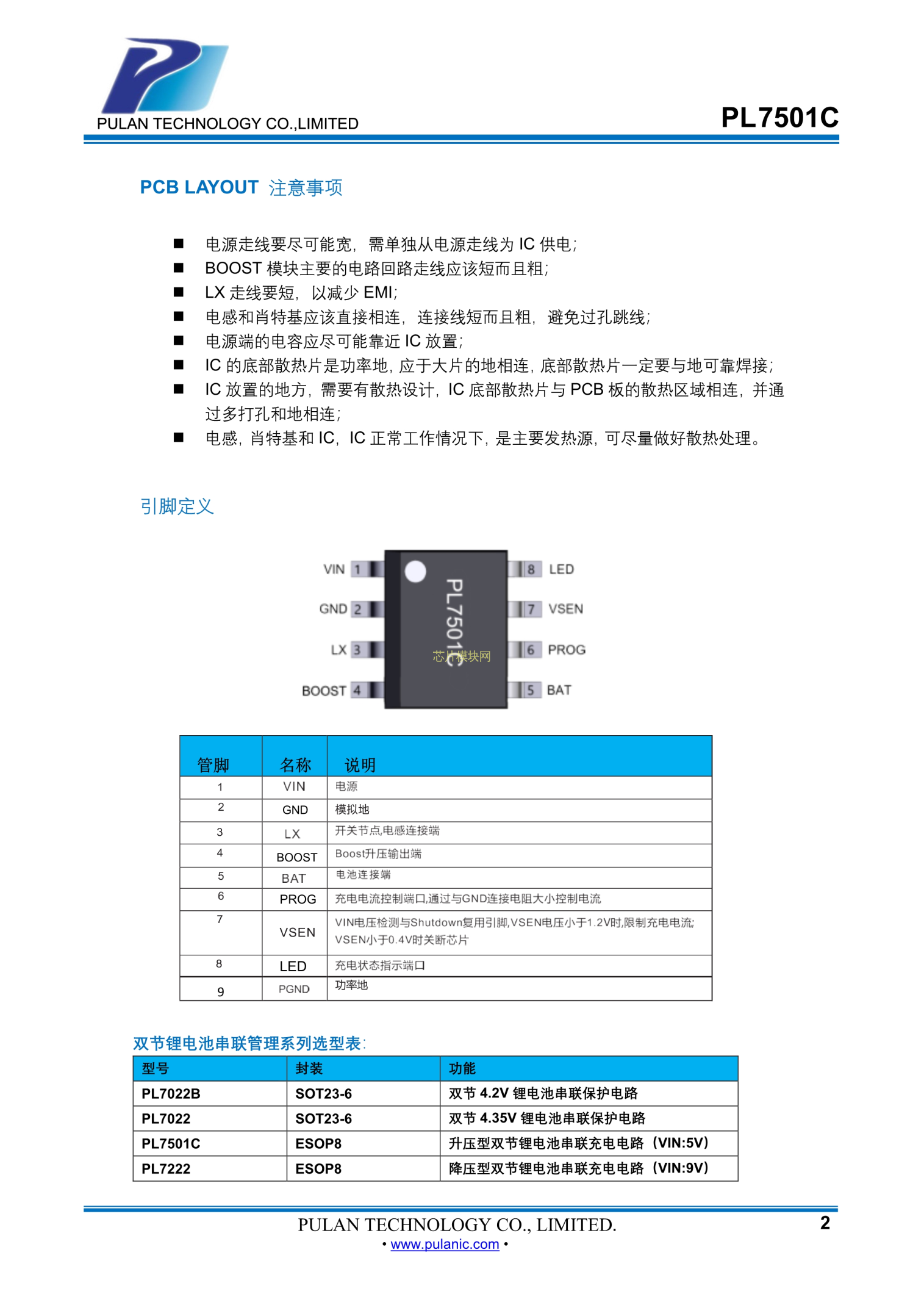 PL7501C 香港普藍科技規格書,中英文下載