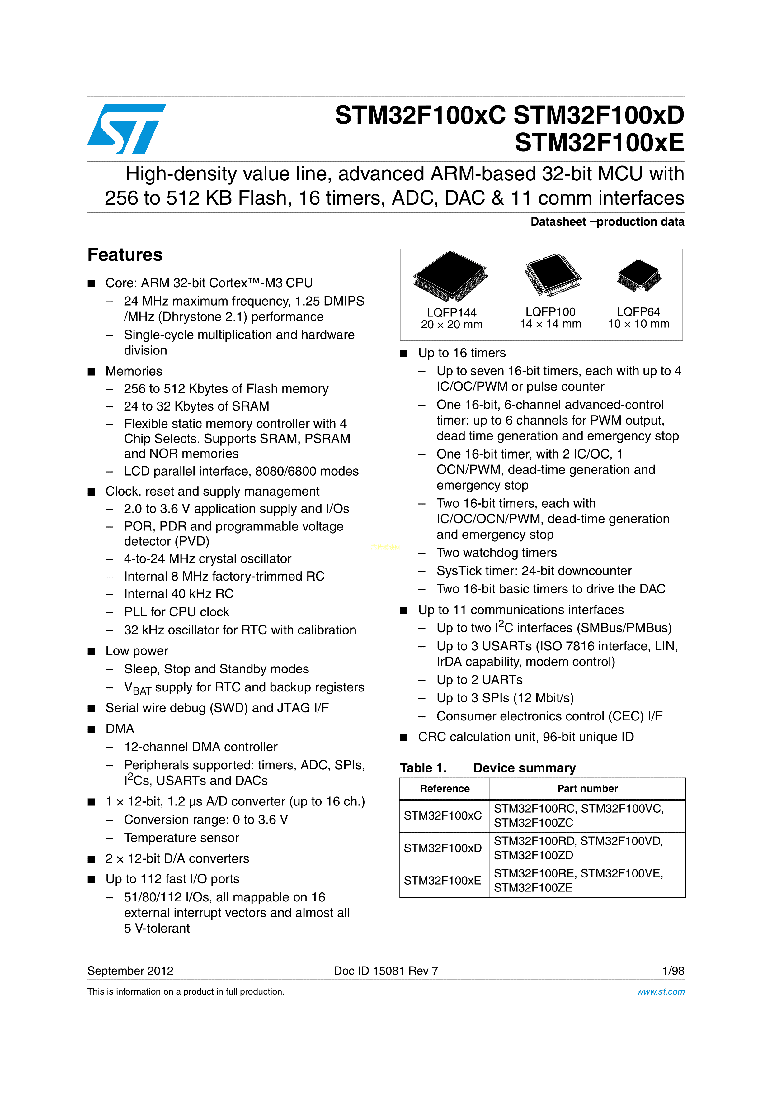 STM32F100VCT6BPDF規格書,中英文下載