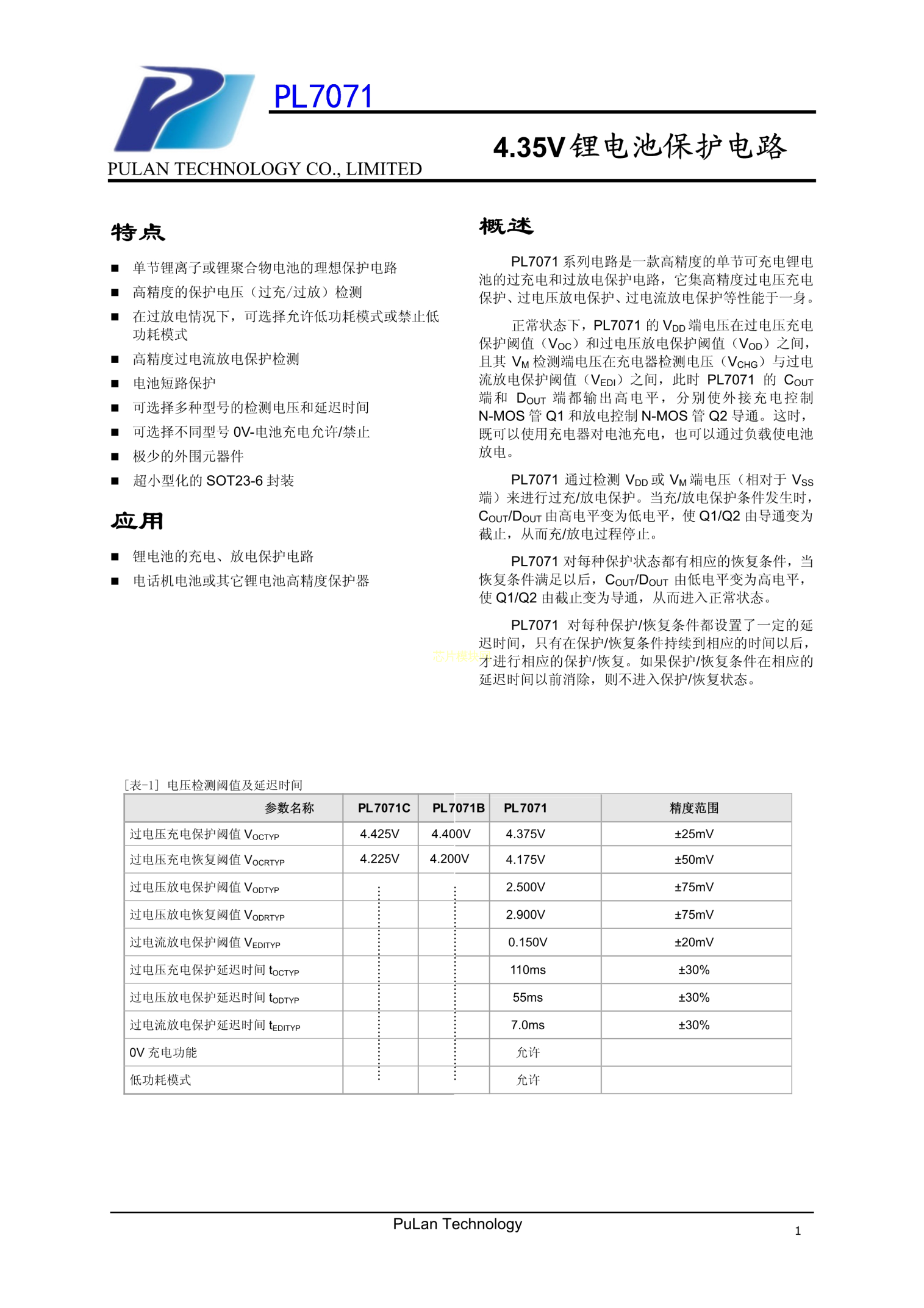 PL7071 繫列 香港普藍科技規格書,中英文下載