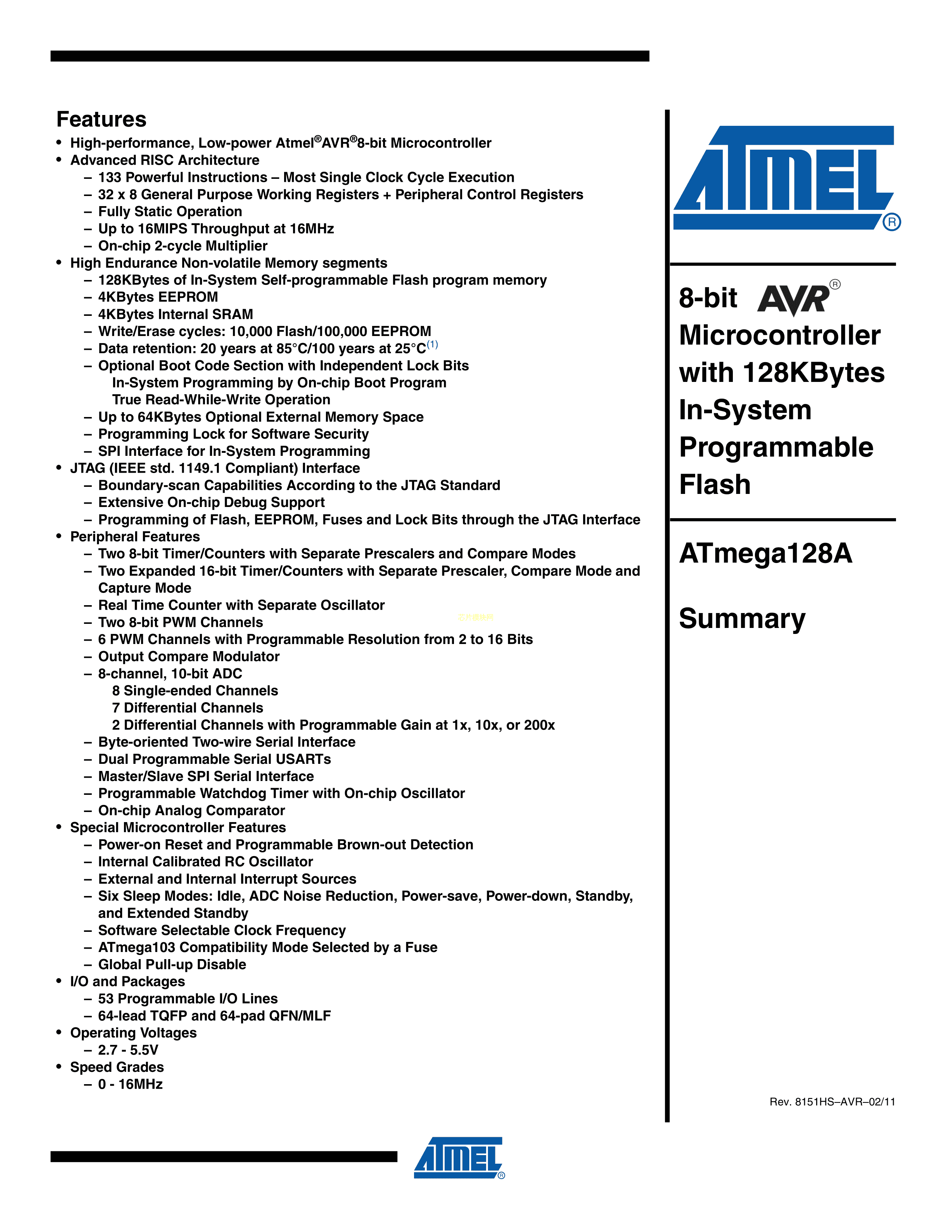 ATMEGA128A-AUPDF規格書,中英文下載