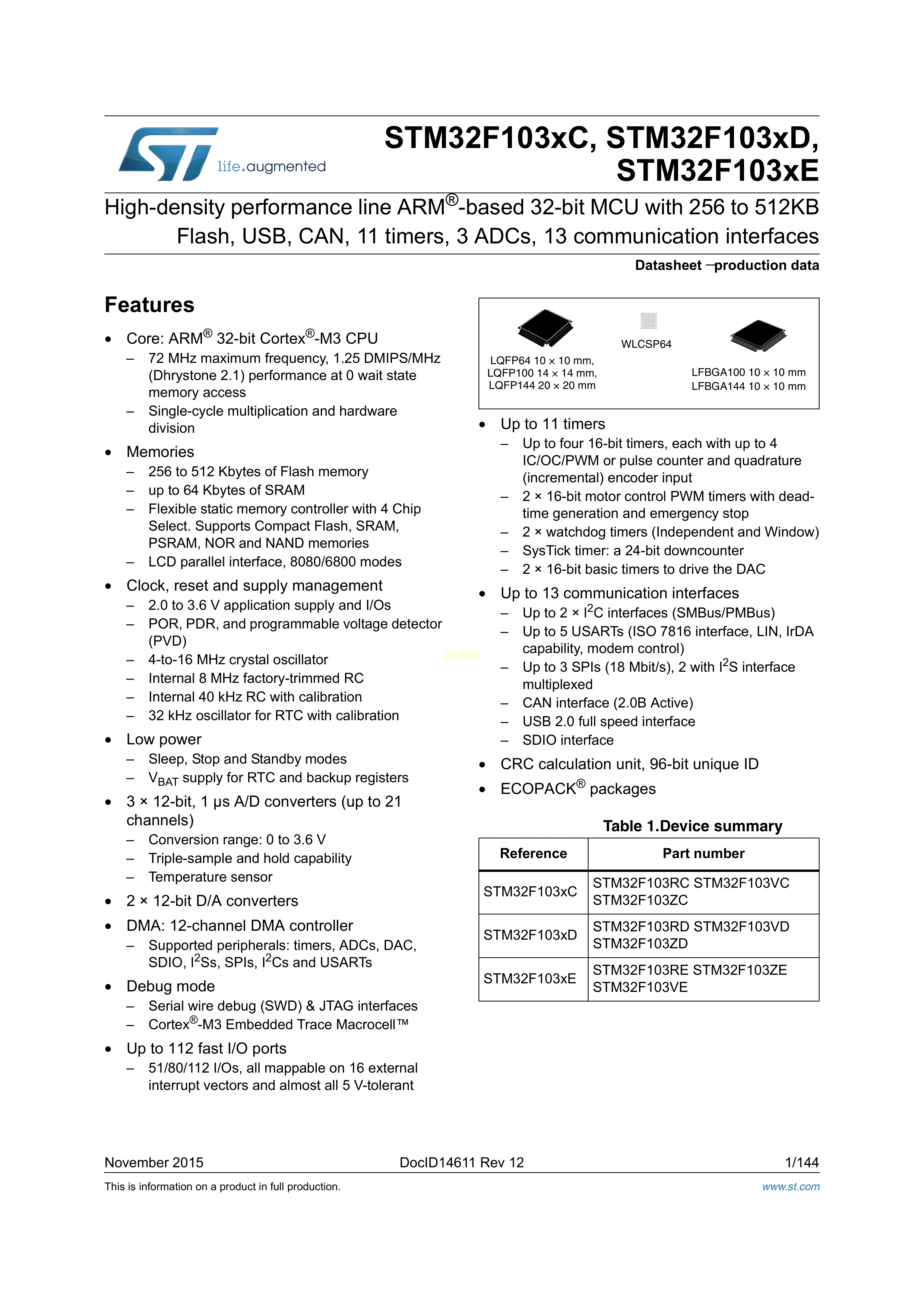 STM32F103RET6PDF規格書,中英文下載