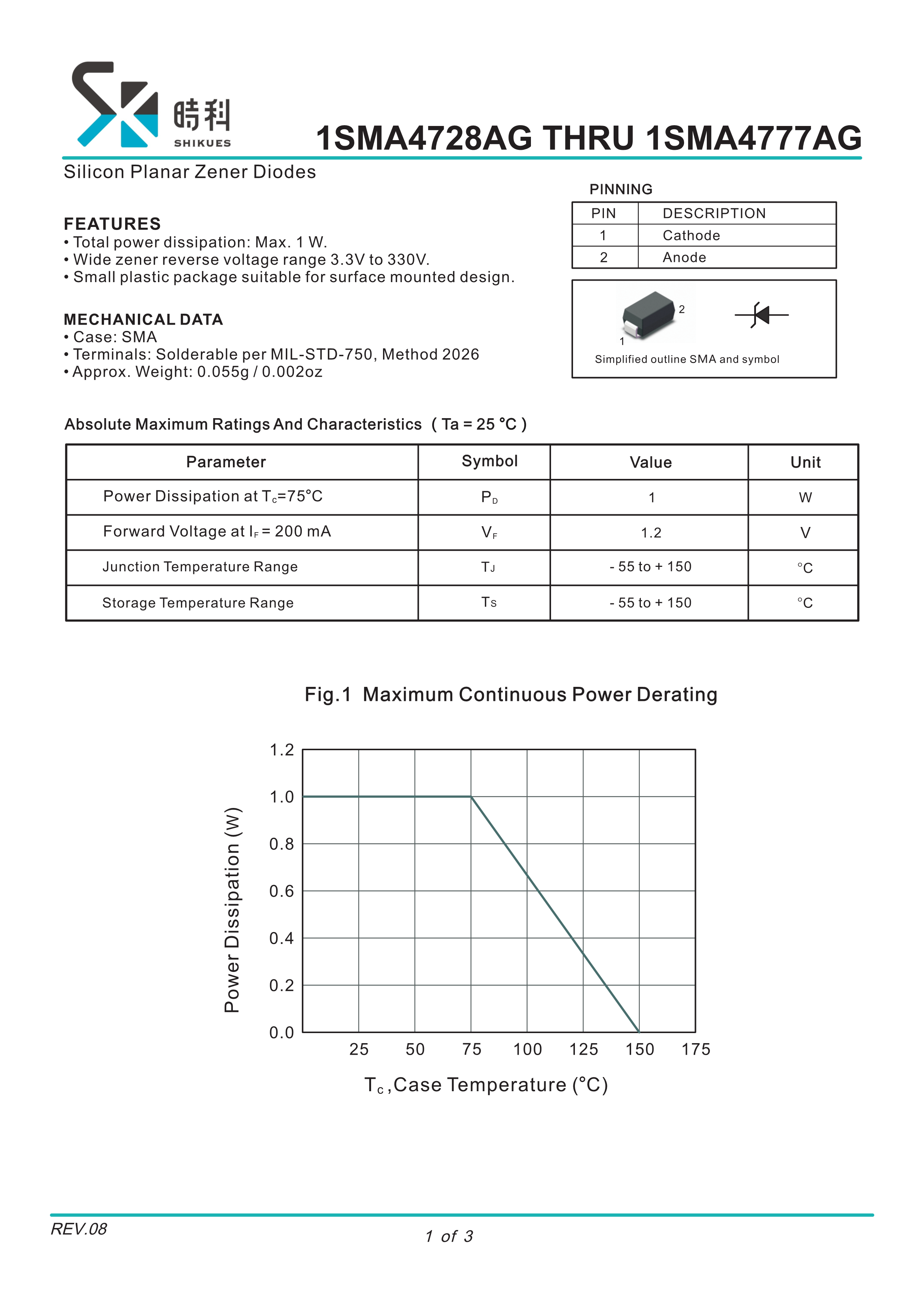 1SMA4740AG數據手冊SMA封裝SHIKUES(時科)PDF規格書,中英文下載